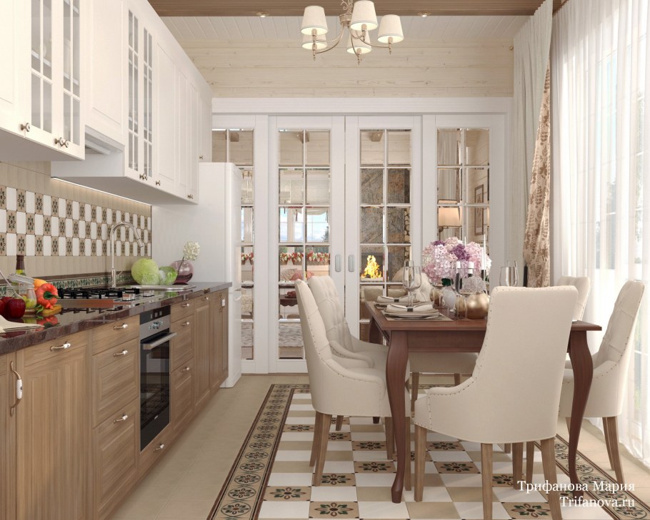 Кухня гостиная в стиле Прованс брусовой дом