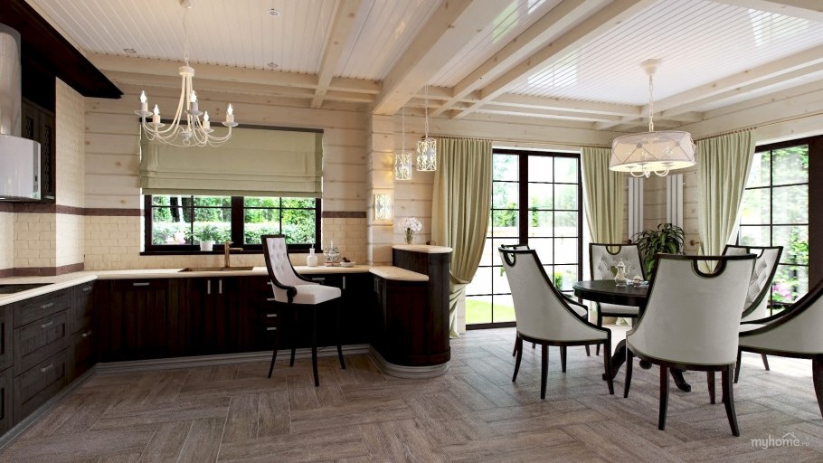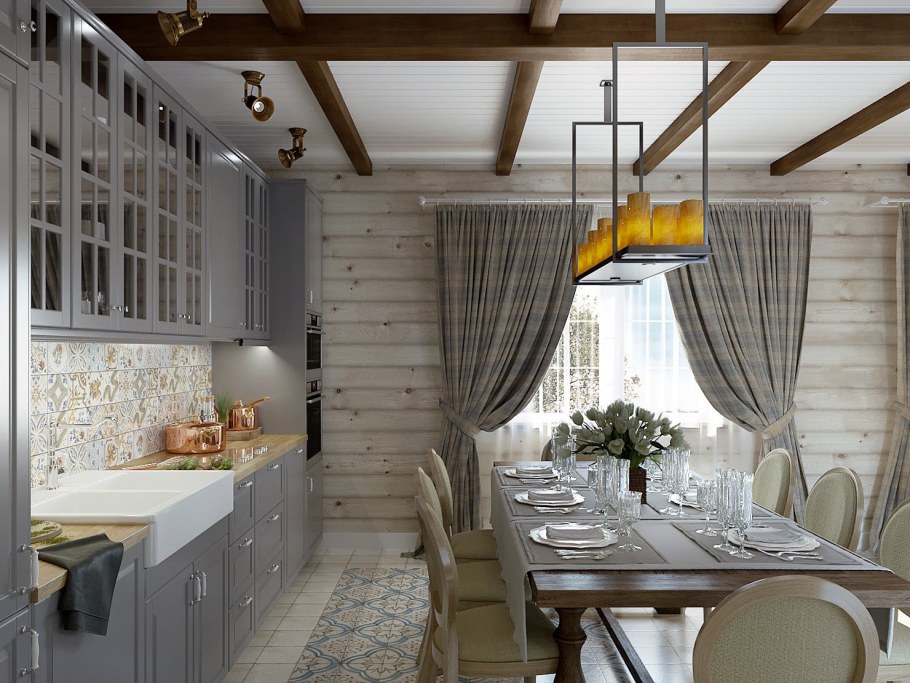 Стиль кухни в брусовом доме