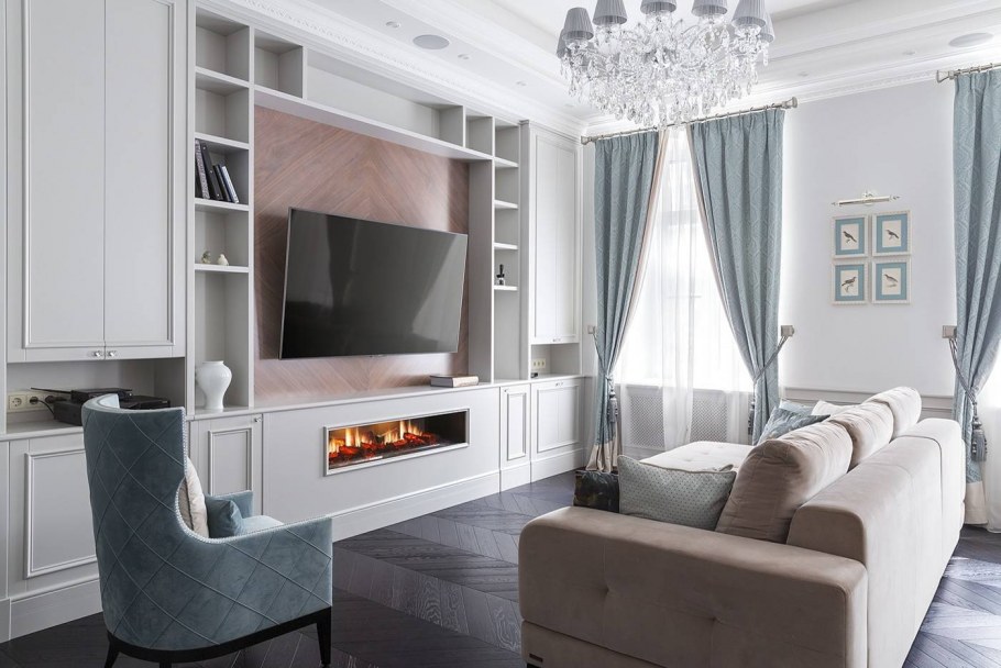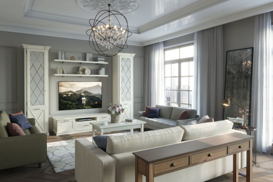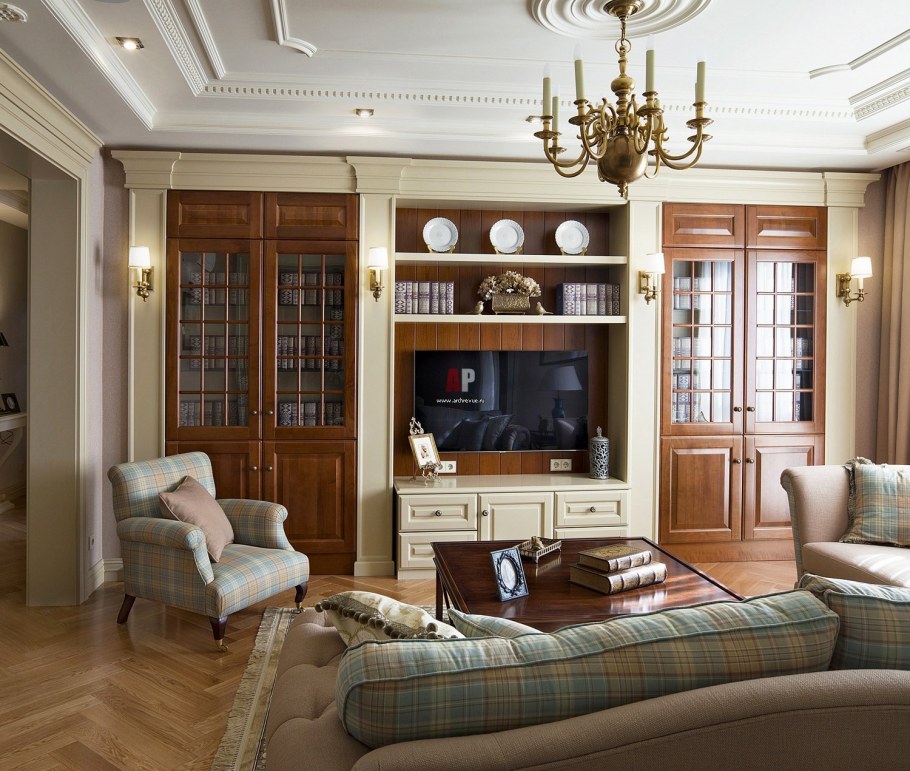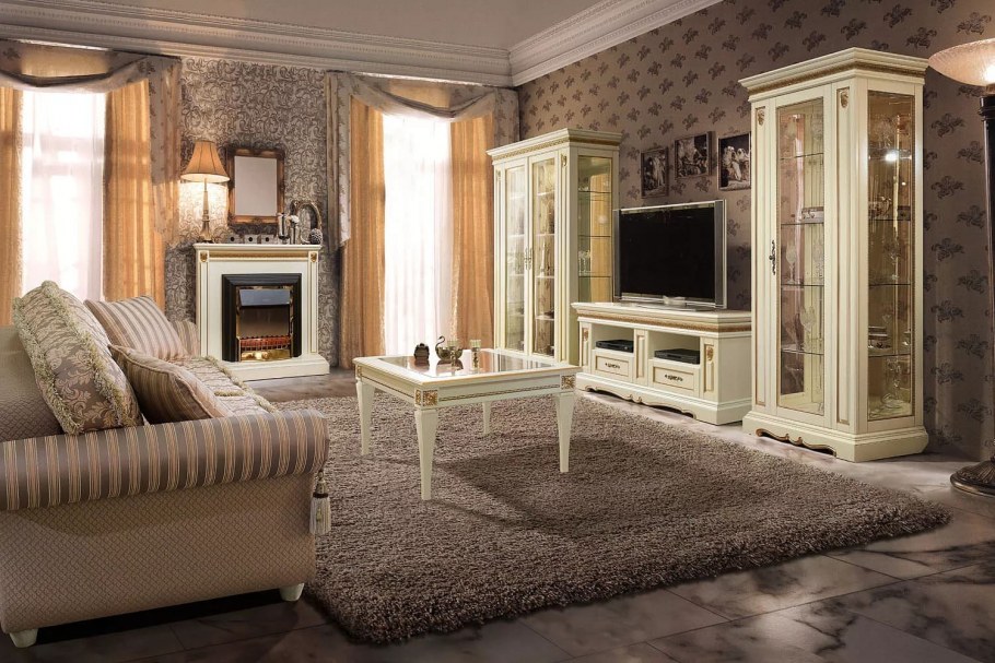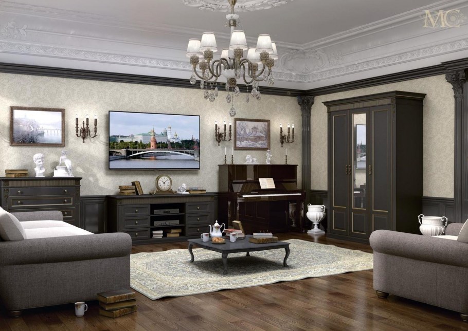Мебель для гостиной в современном классическом стиле в интерьере (41 фото)