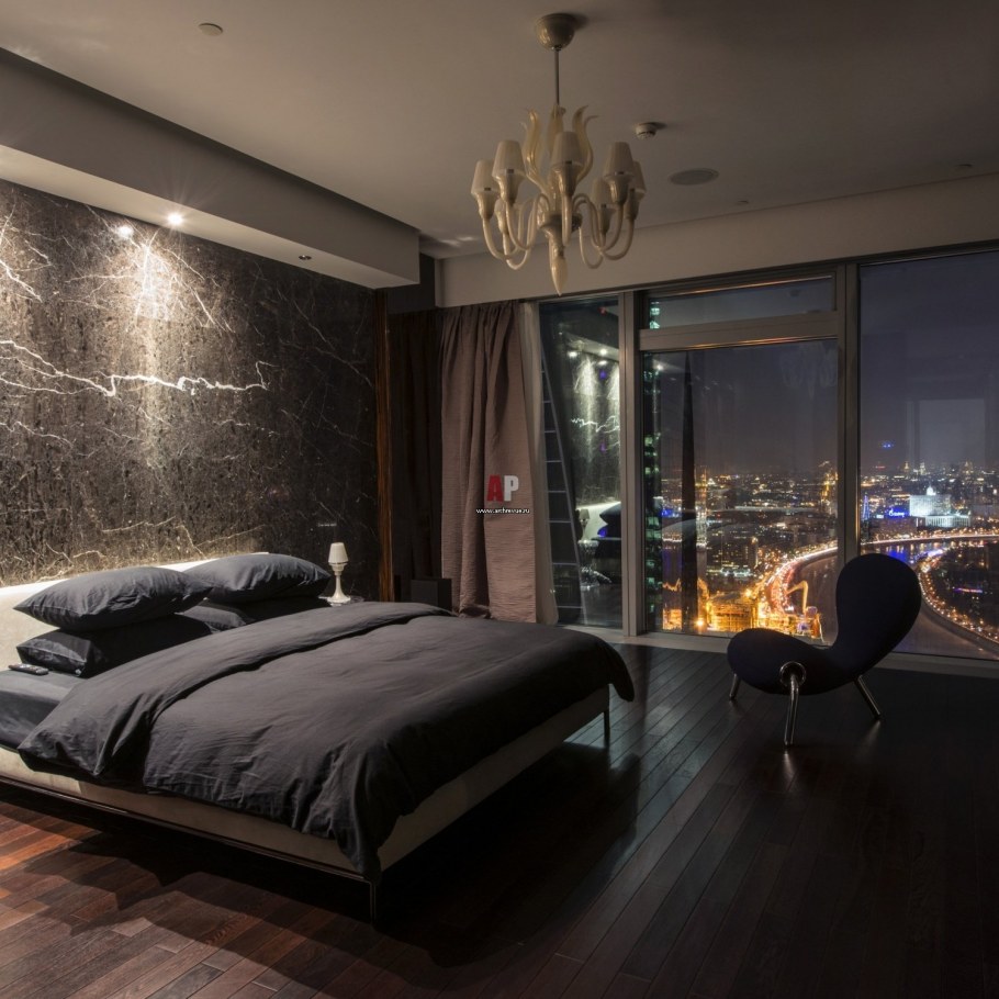 Спальня с панорамными окнами в квартире