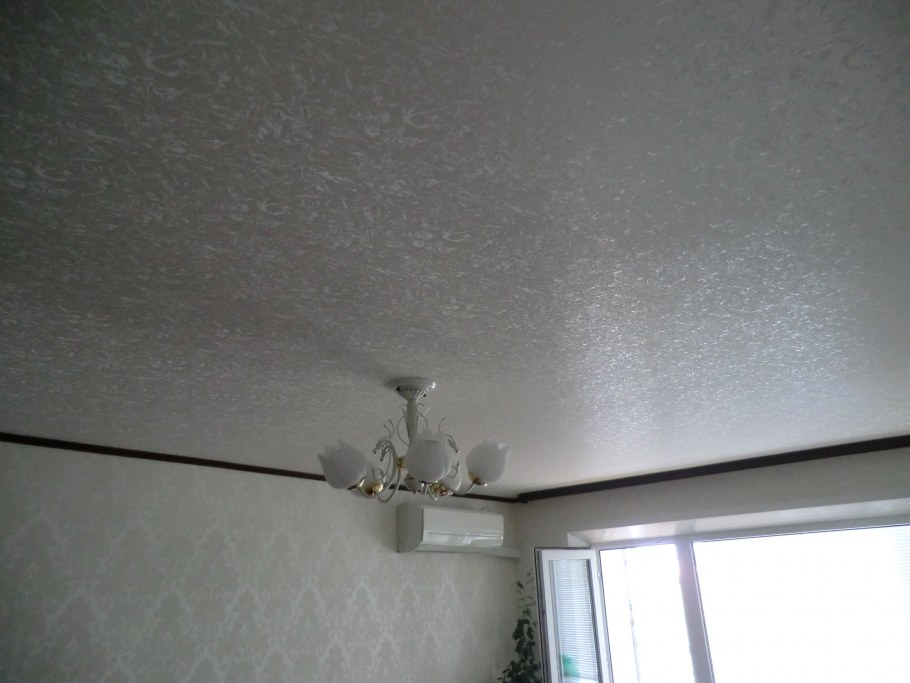 Потолок оклеенный обоями