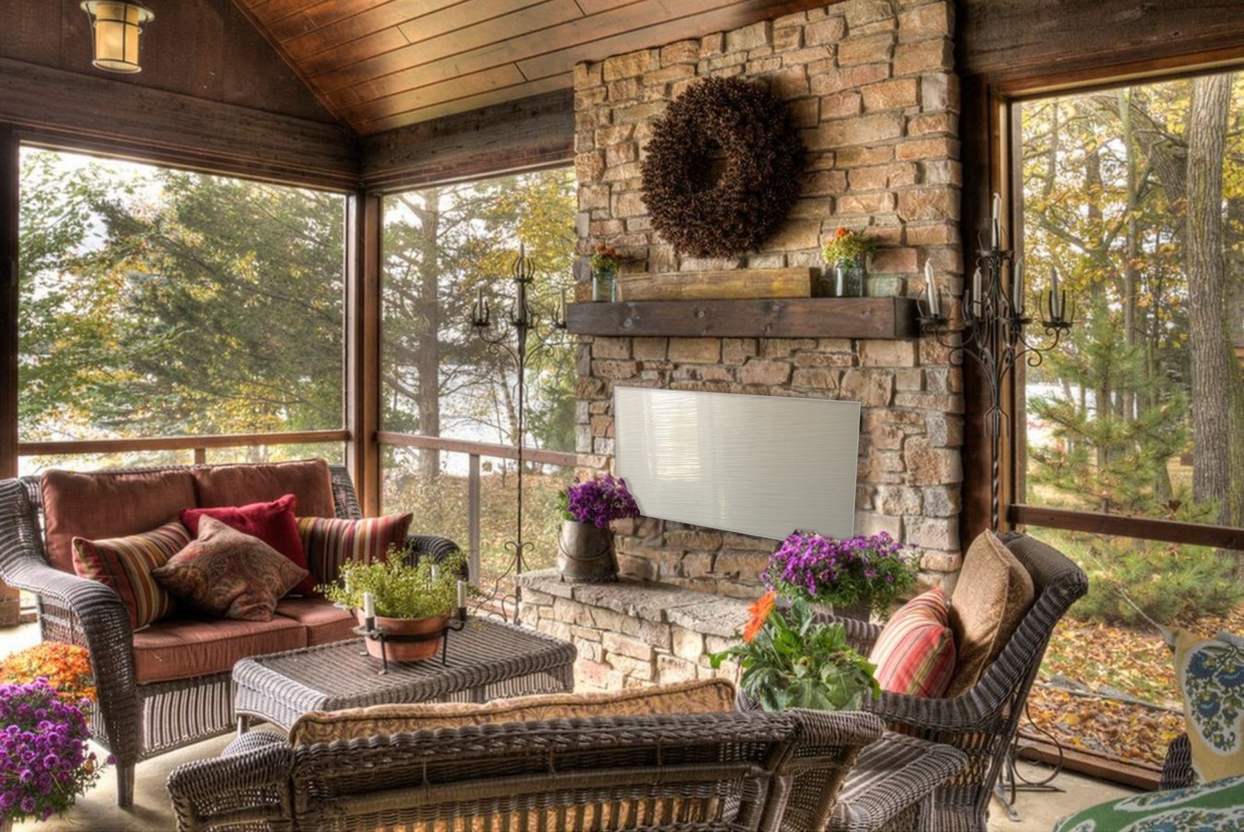 Застекленная веранда с камином