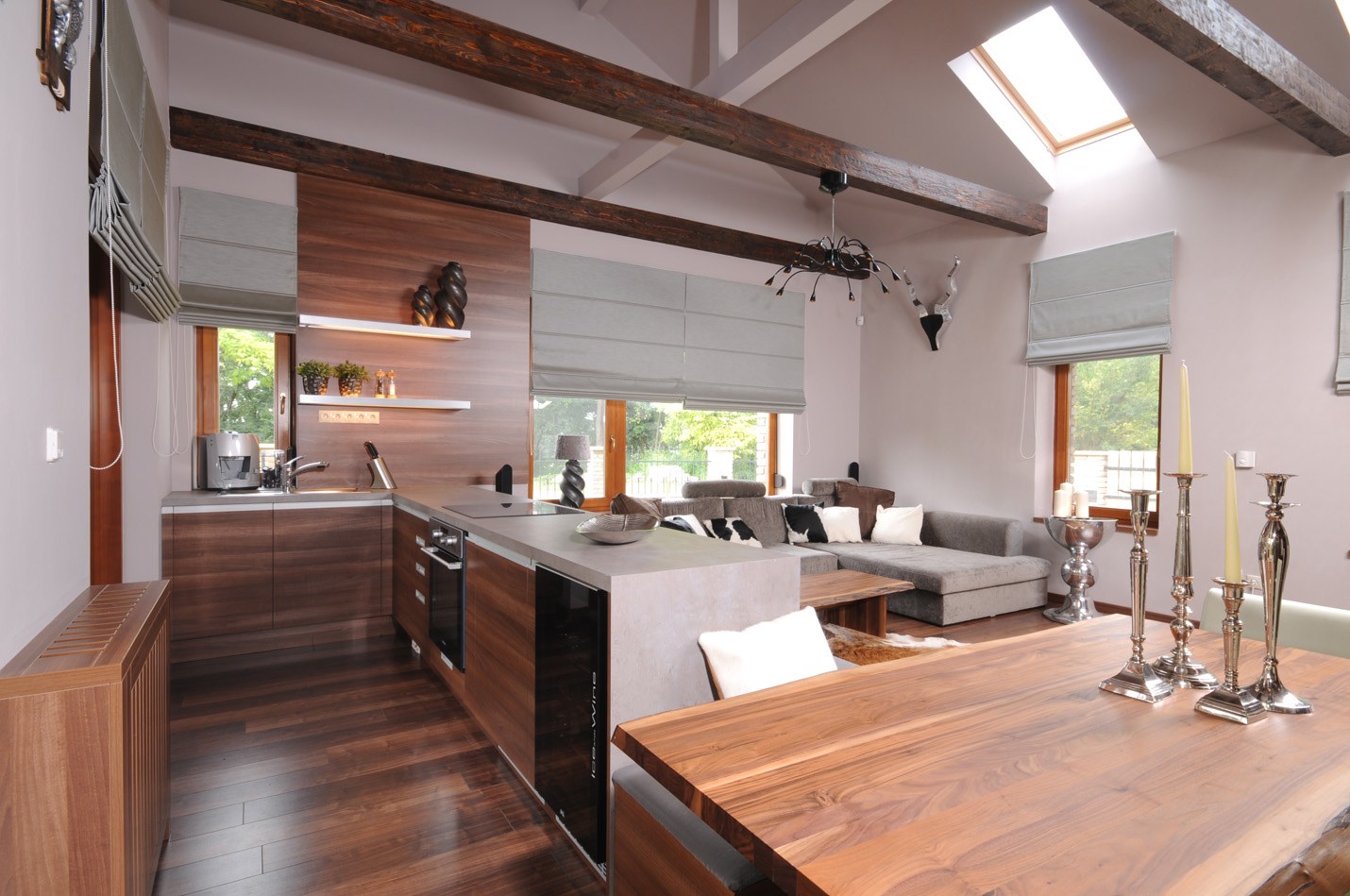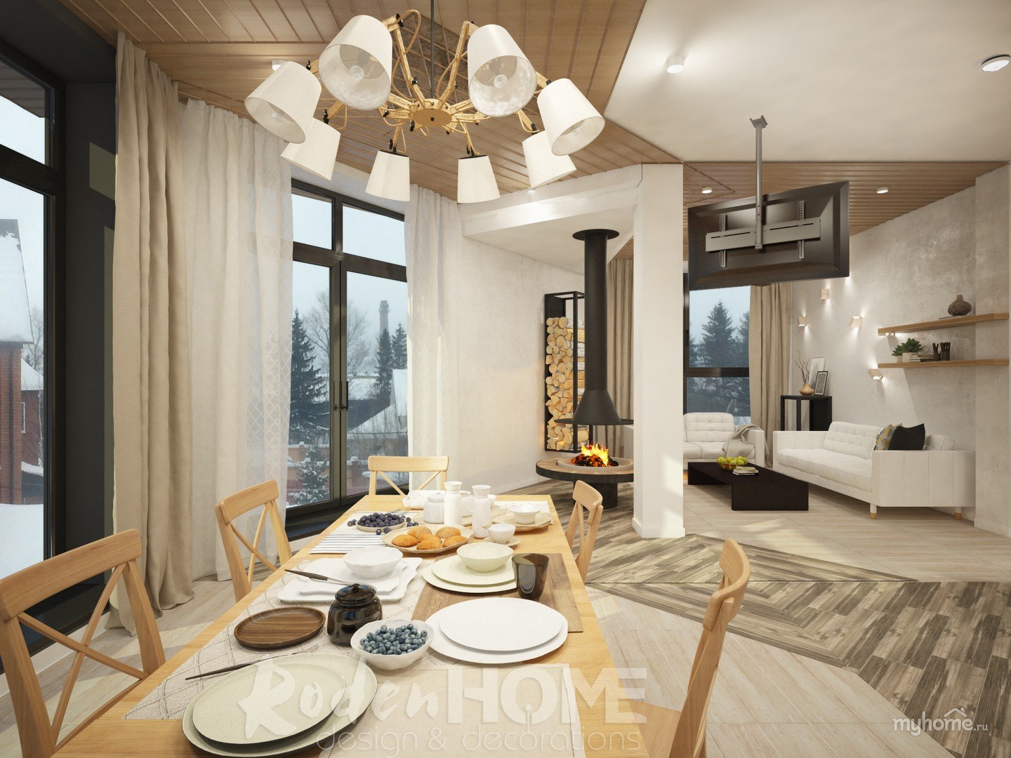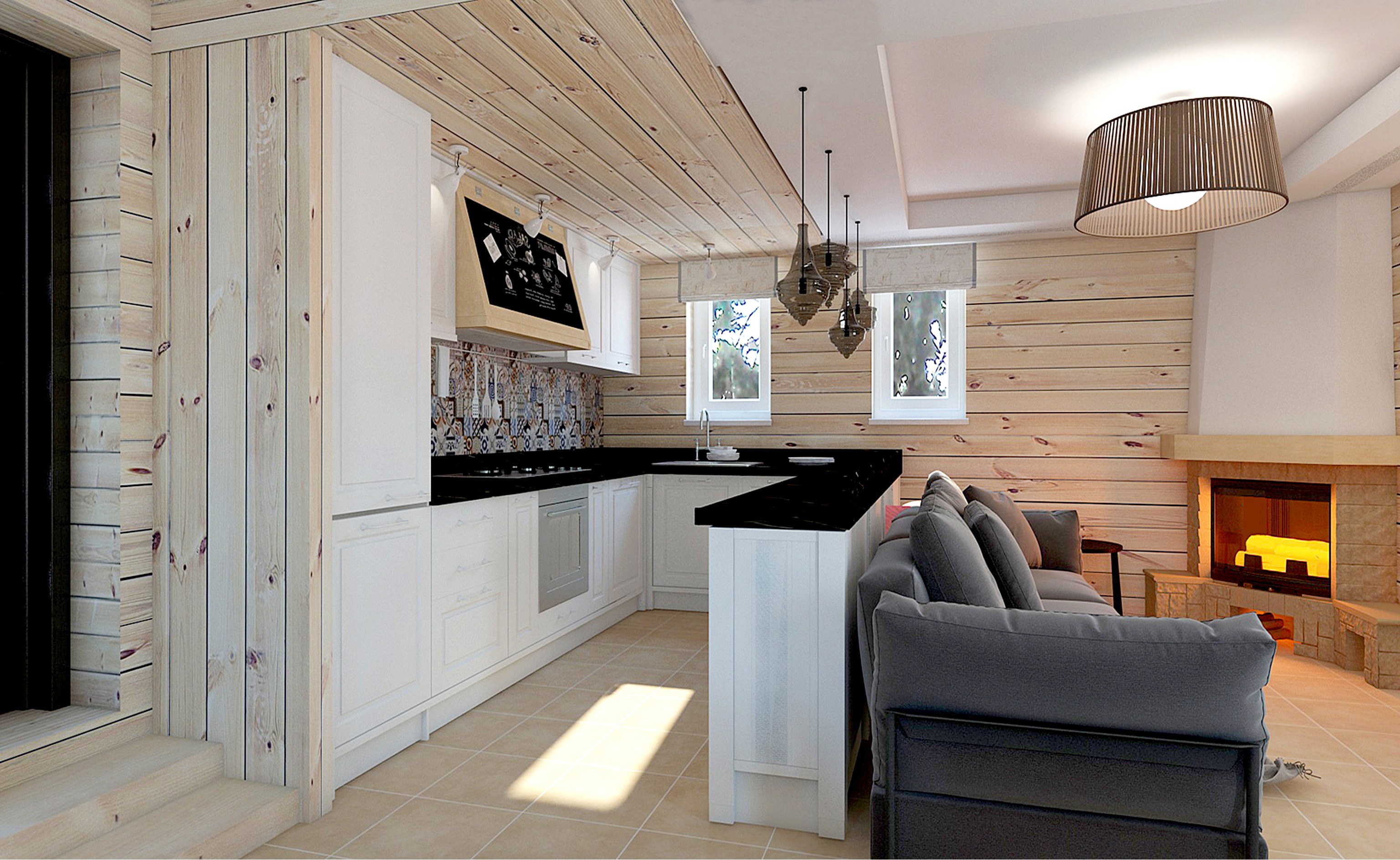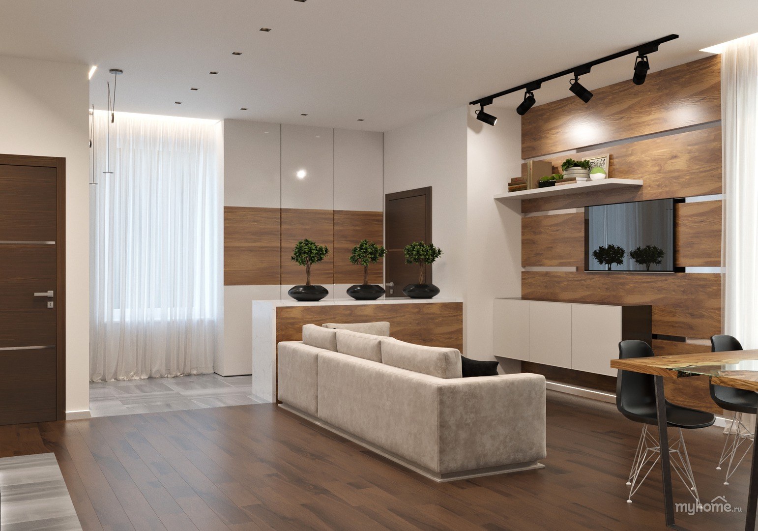 Дизайн кухни гостиной с элементами дерева (58 фото)