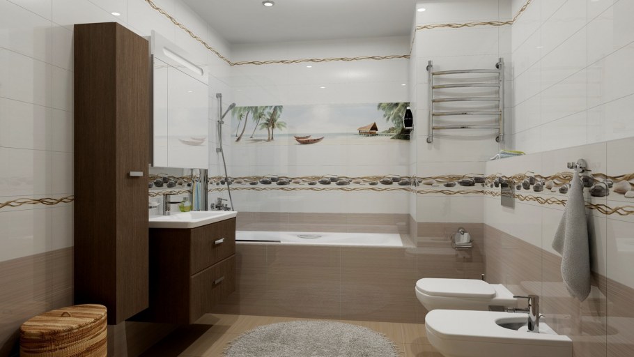 Дизайн проекты ванной комнаты с плиткой (68 фото)