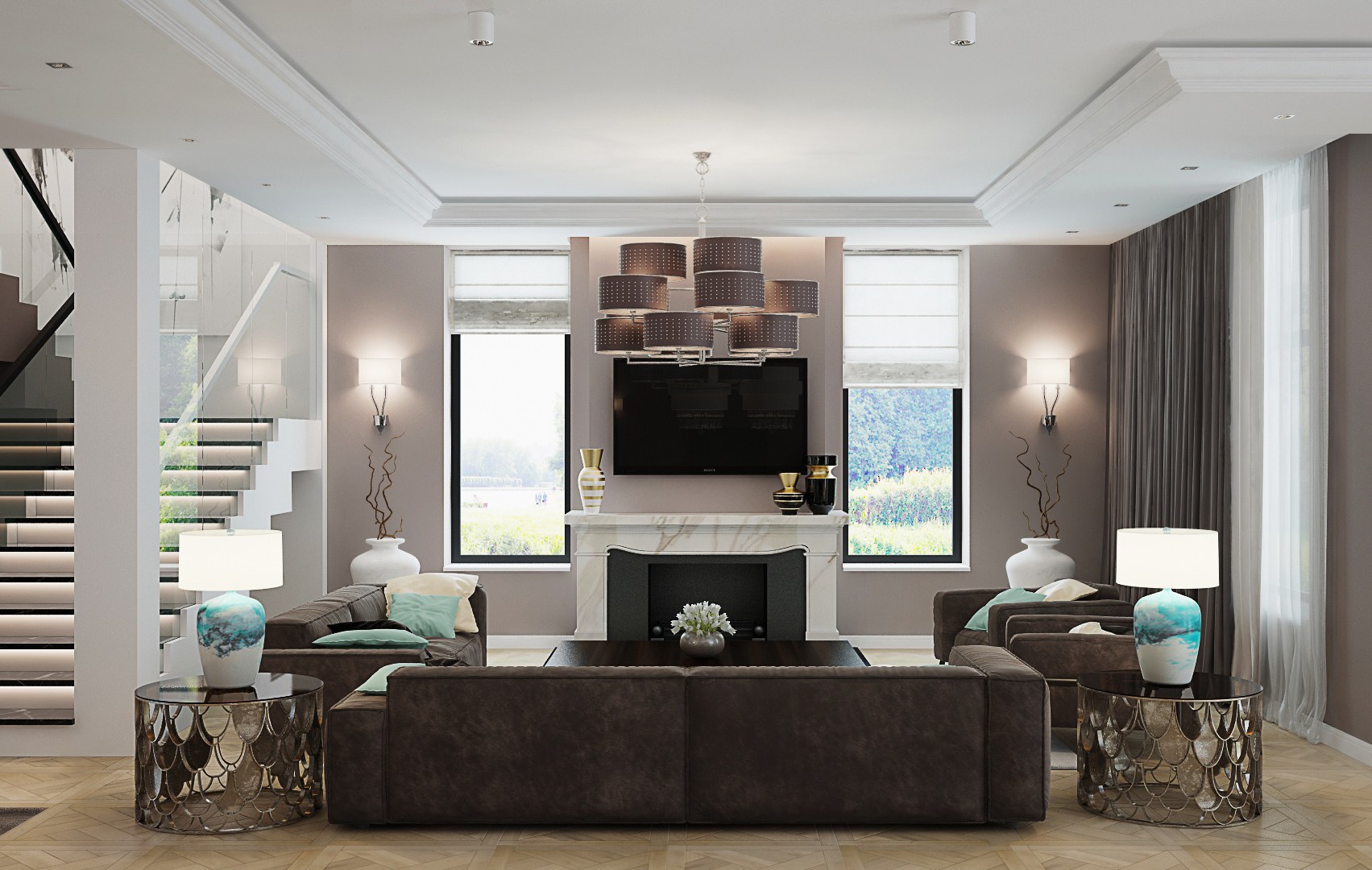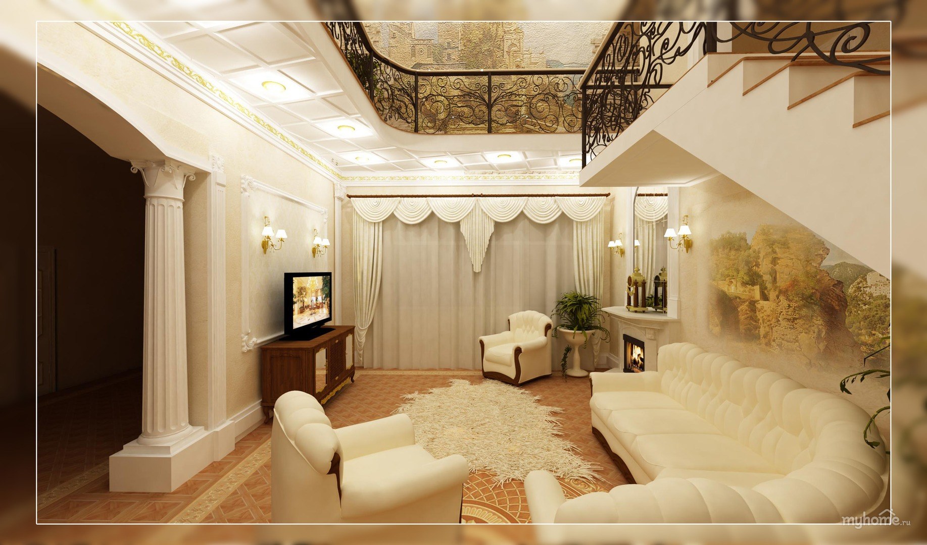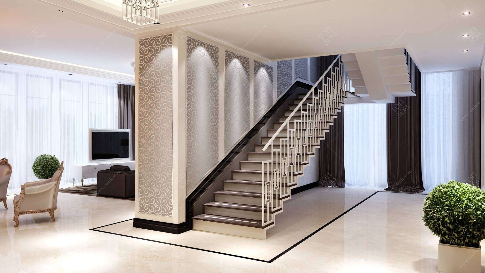 Холл гостиная с лестницей