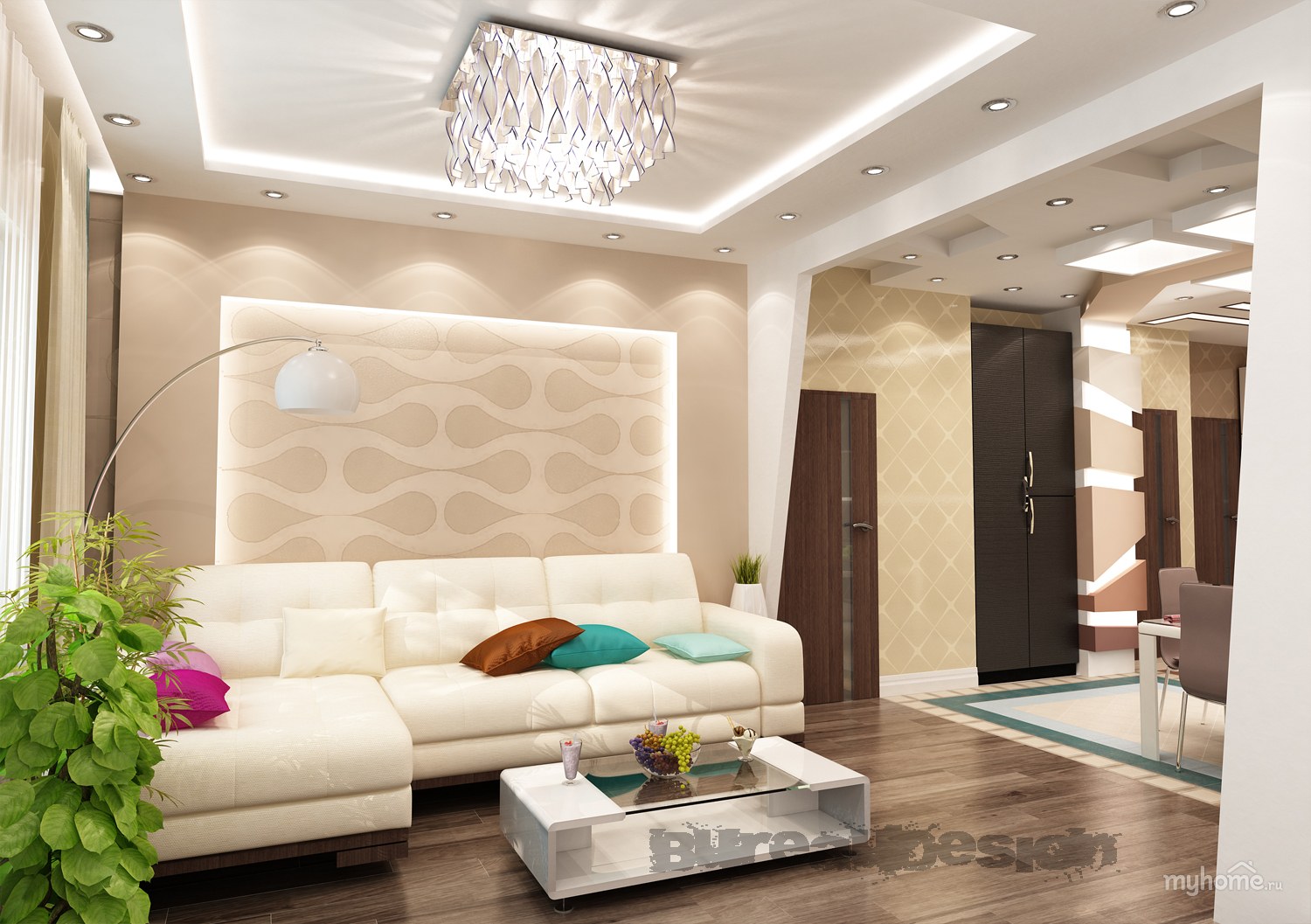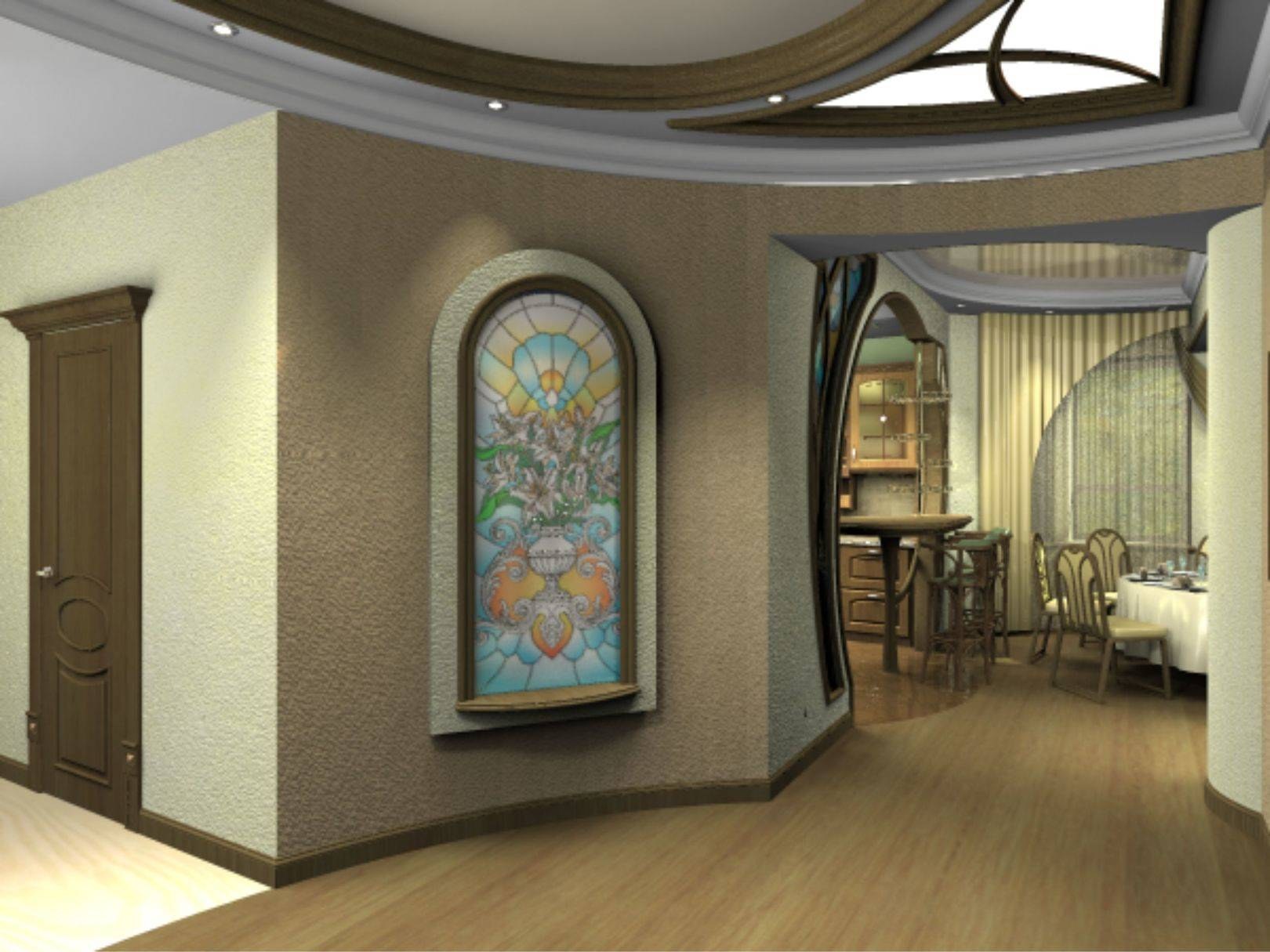 Интерьер гостиной с холлом