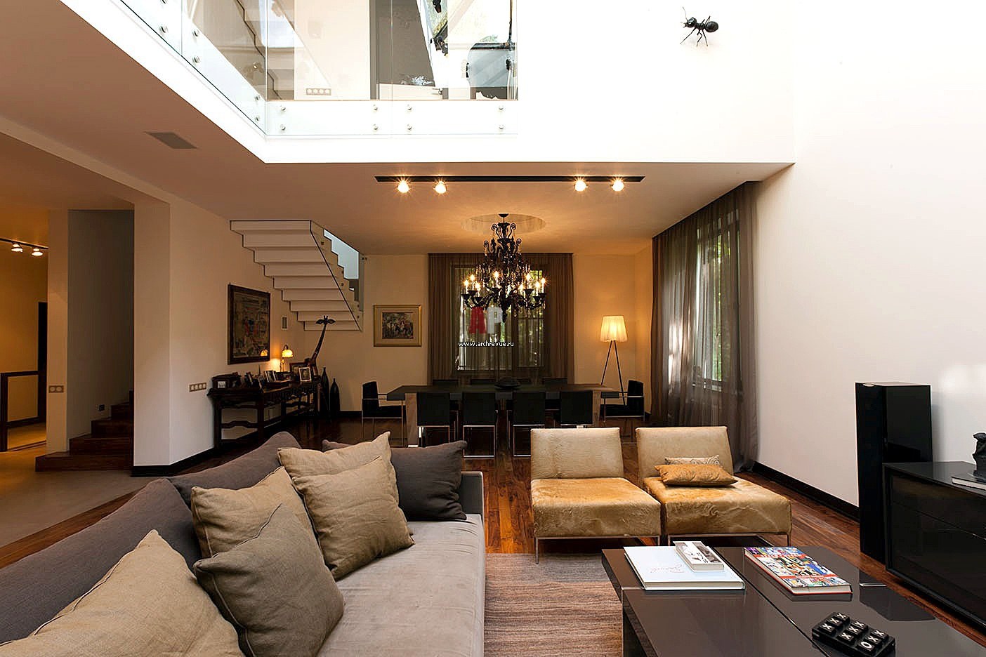 Совмещённый лестничной Холл и гостиная