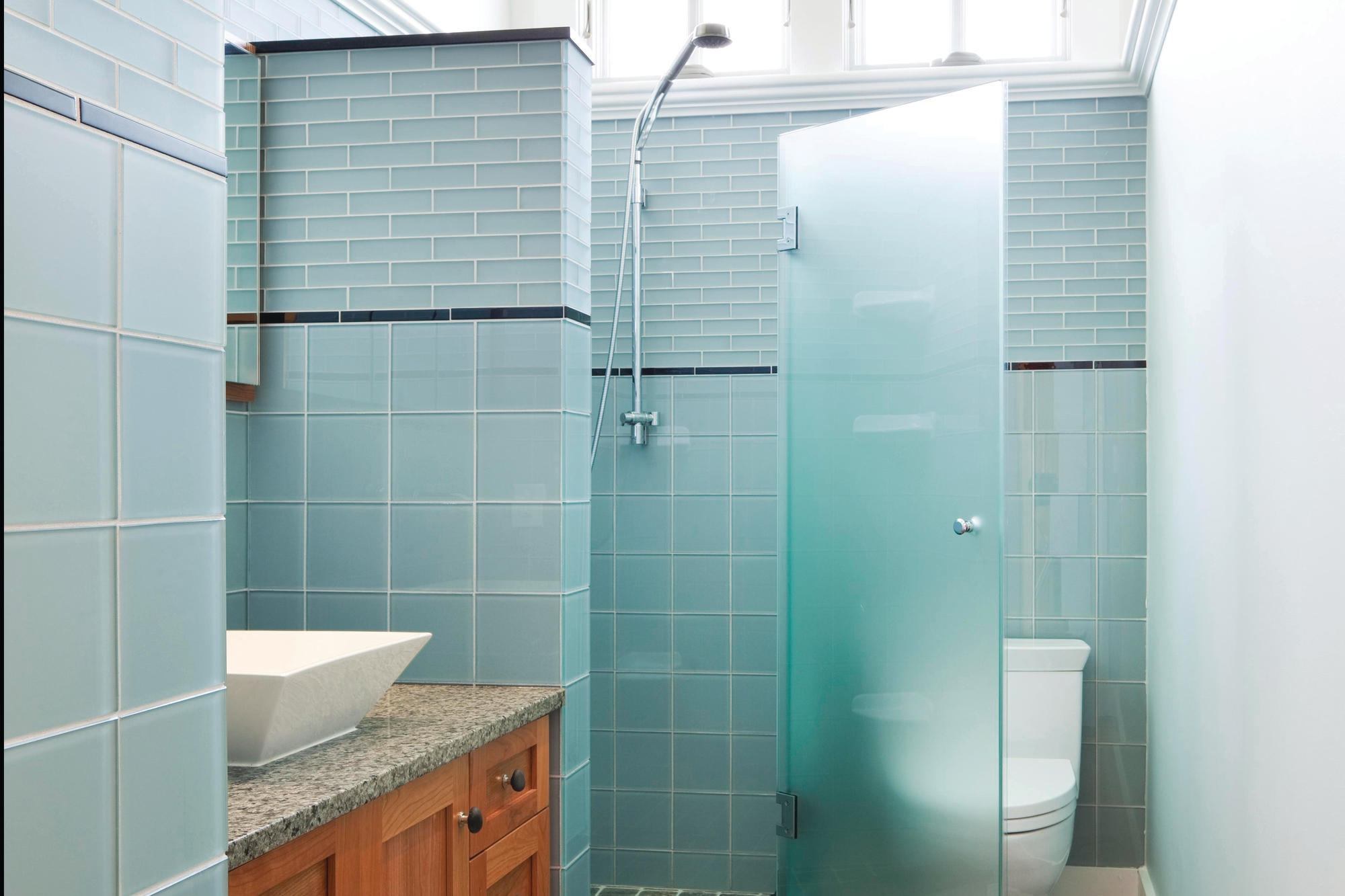 Душевая и туалет со стеклянными перегородками