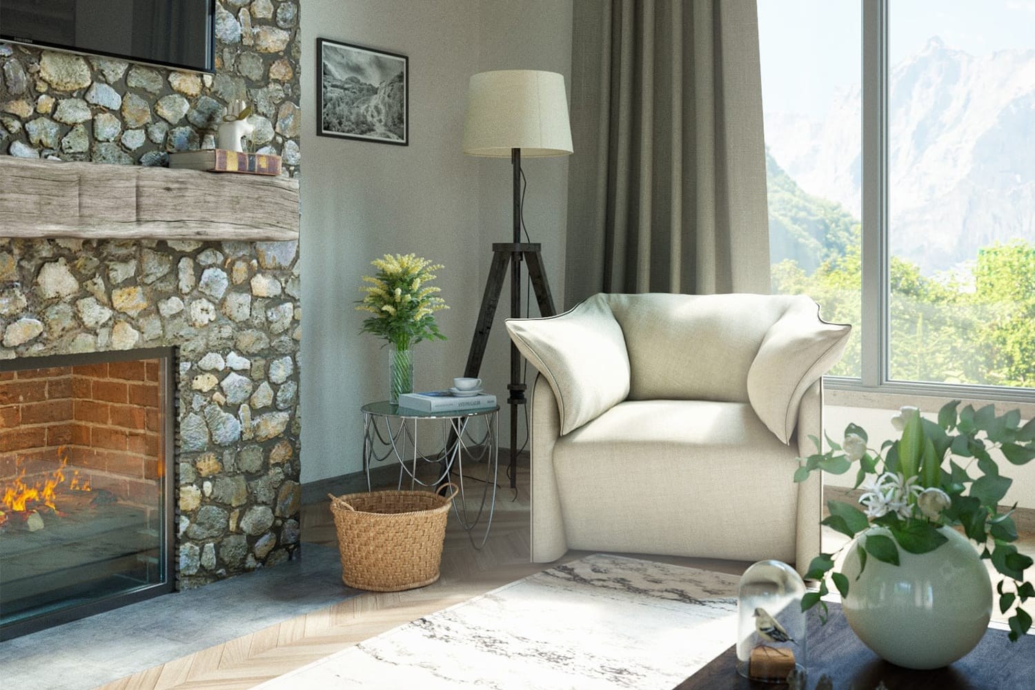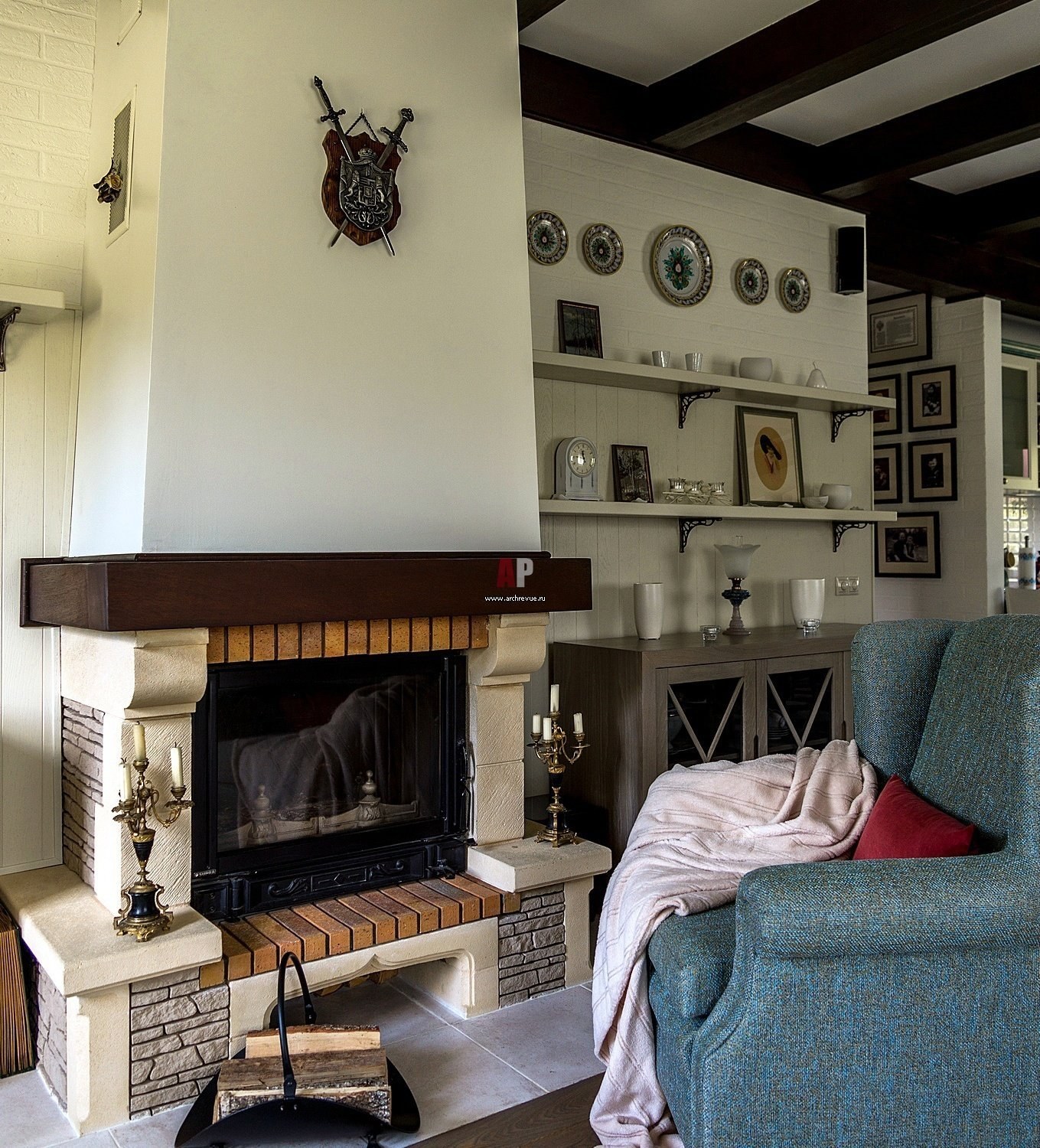Кресло у камина в интерьере