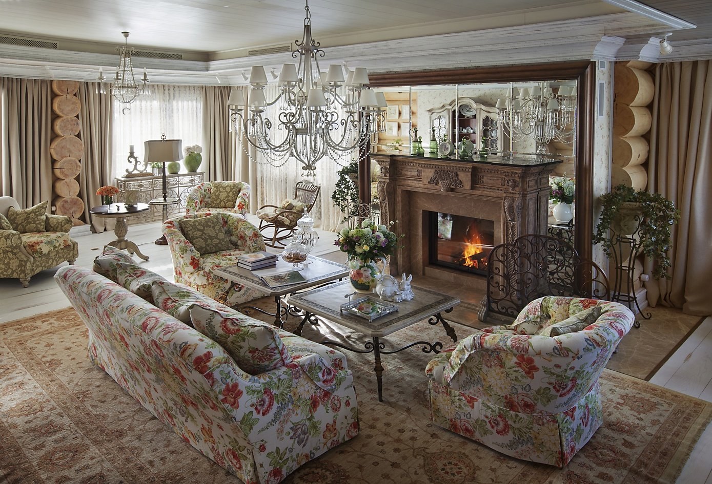 Комната с камином в стиле Прованс