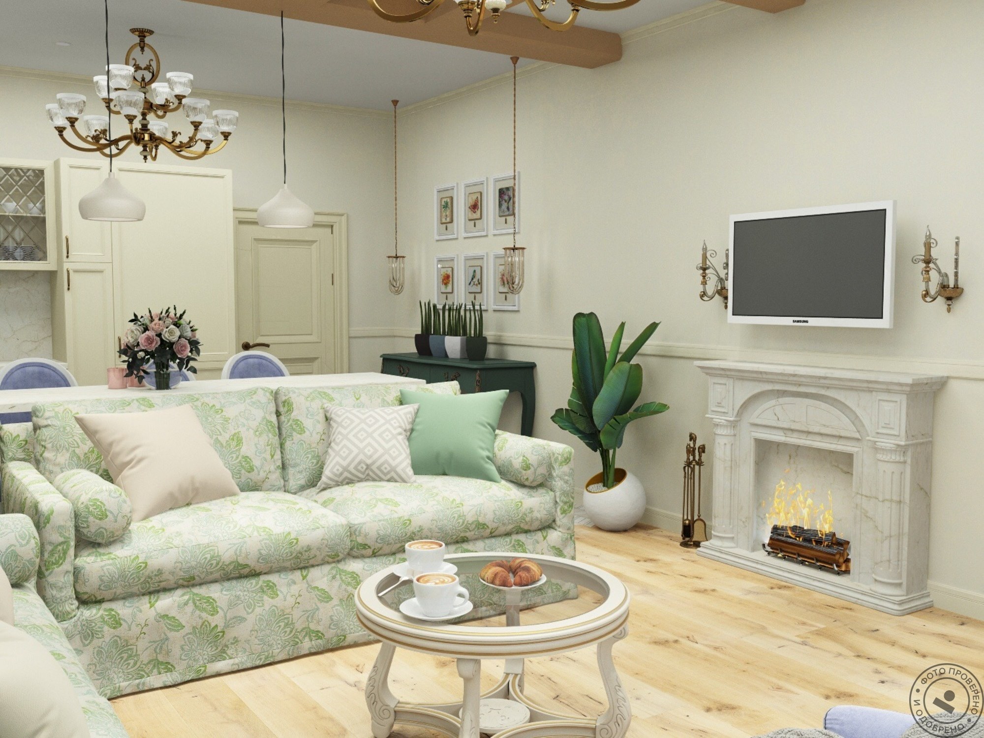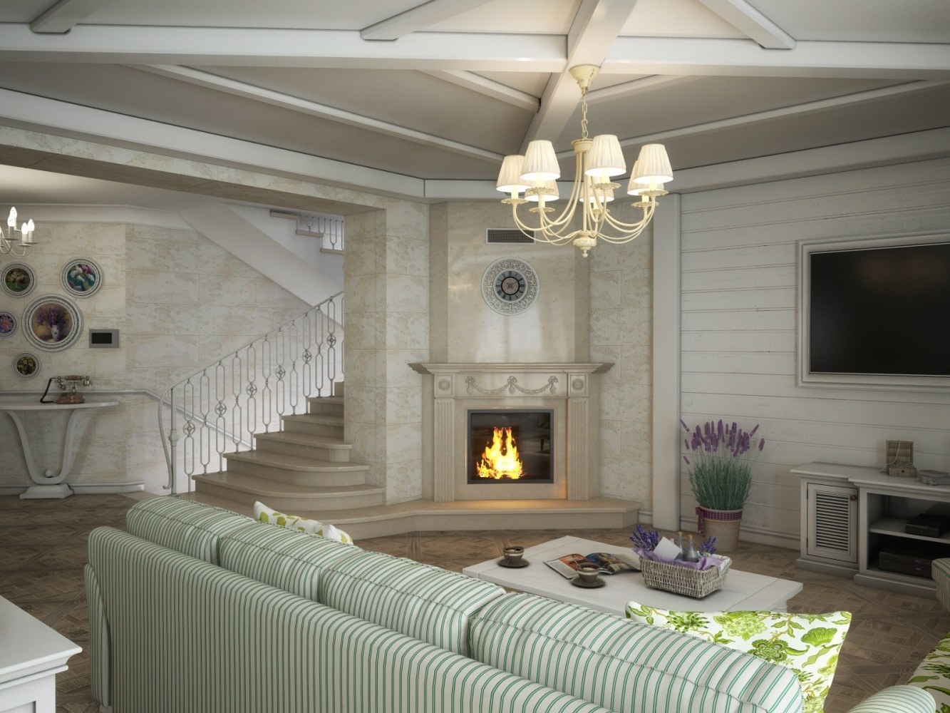 Зал в стиле Прованс с камином
