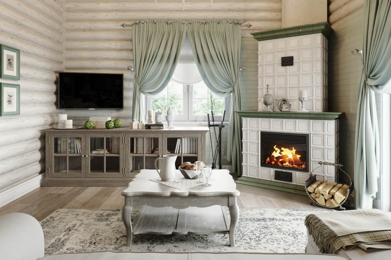 Камин в стиле прованс в интерьере (42 фото)
