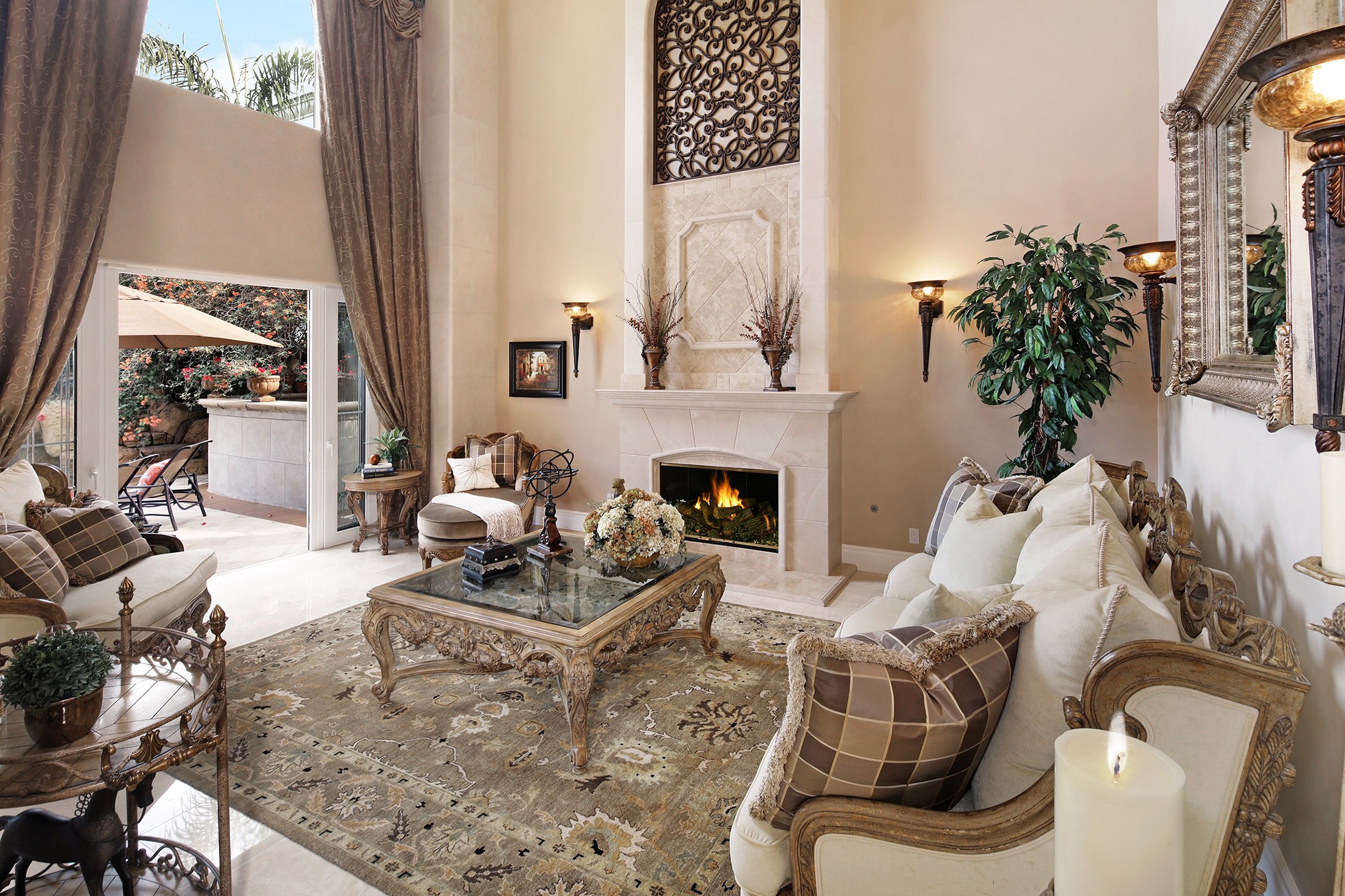 Шикарная гостиная с камином