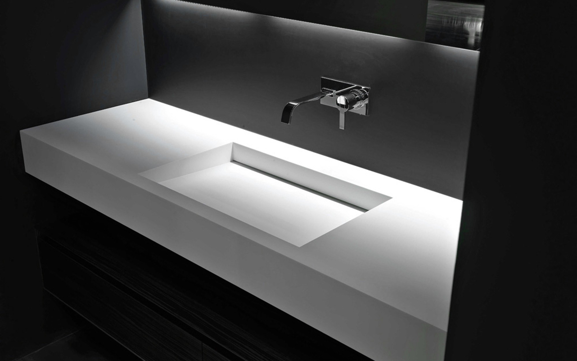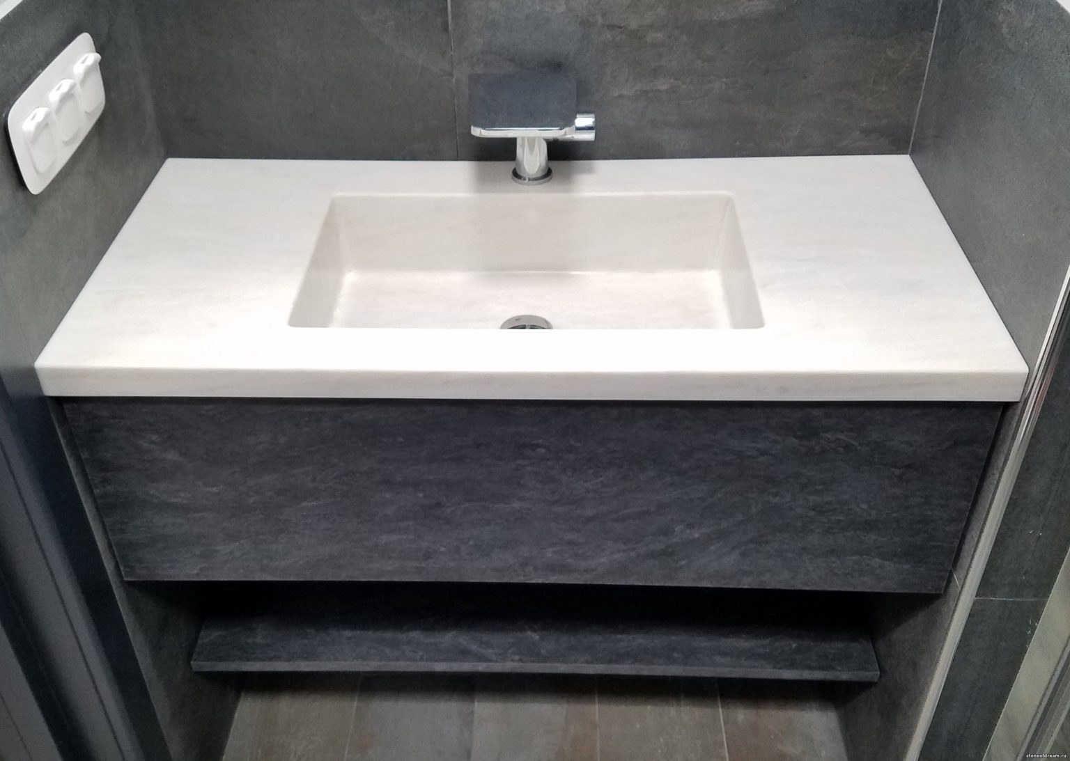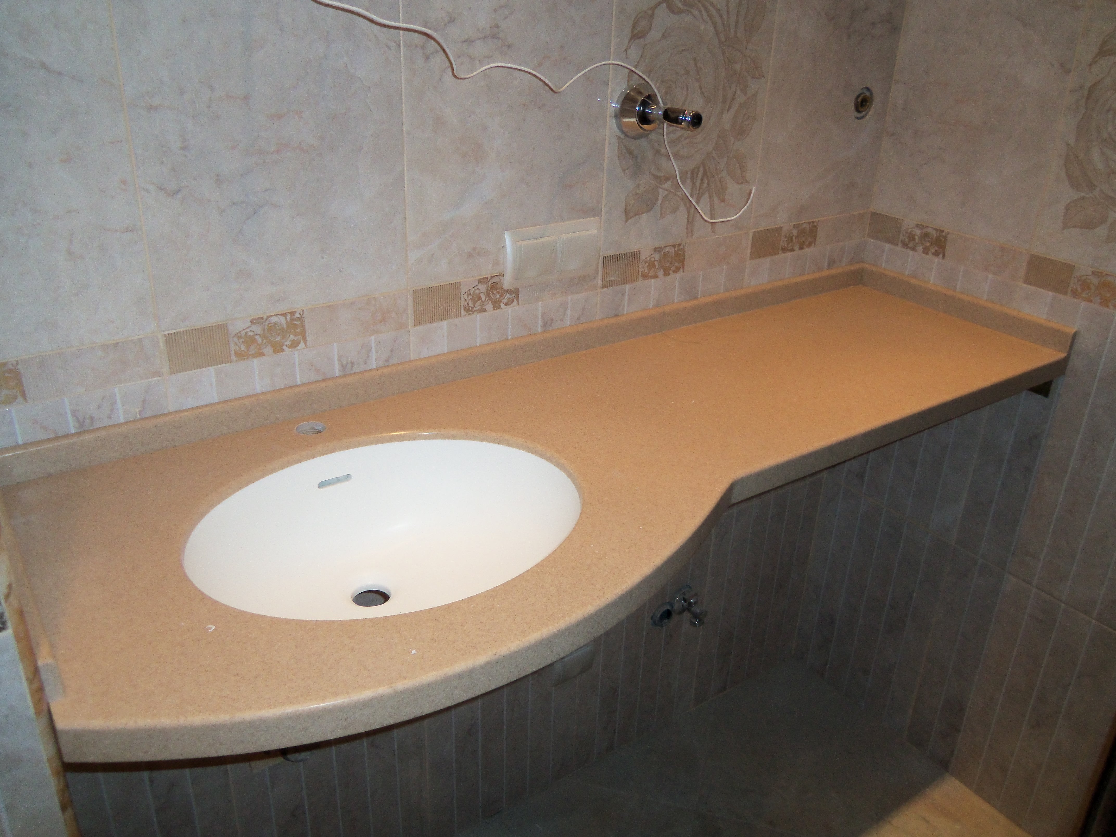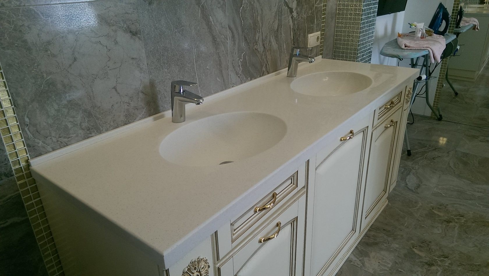 Умывальник в ванную комнату со столешницей из искусственного камня