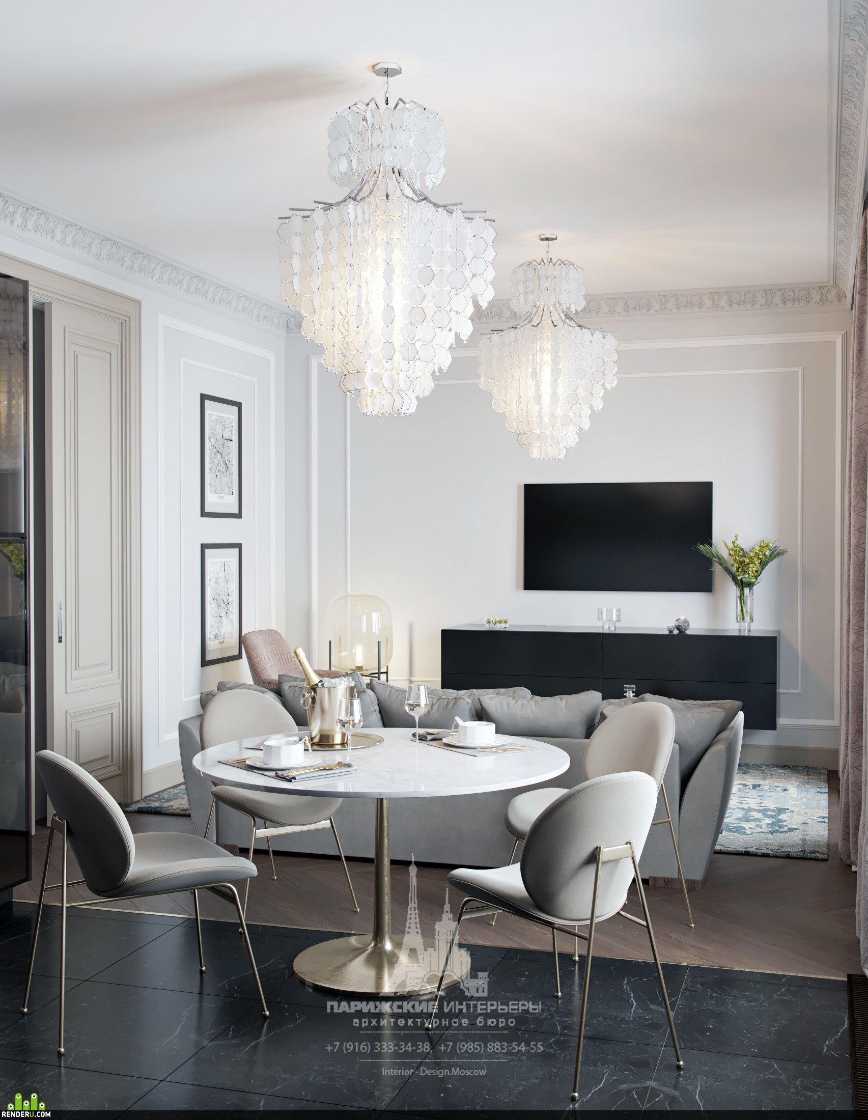 Дизайн интерьера кухни-гостиной в парижском стиле
