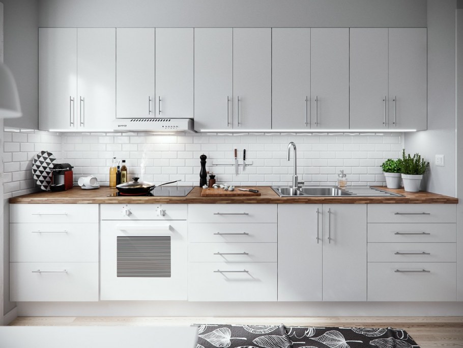 Икеа кухонный гарнитур белый с деревянной столешницей