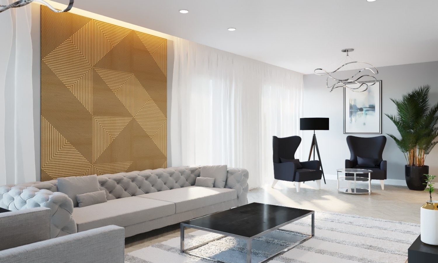 Современная отделка зала