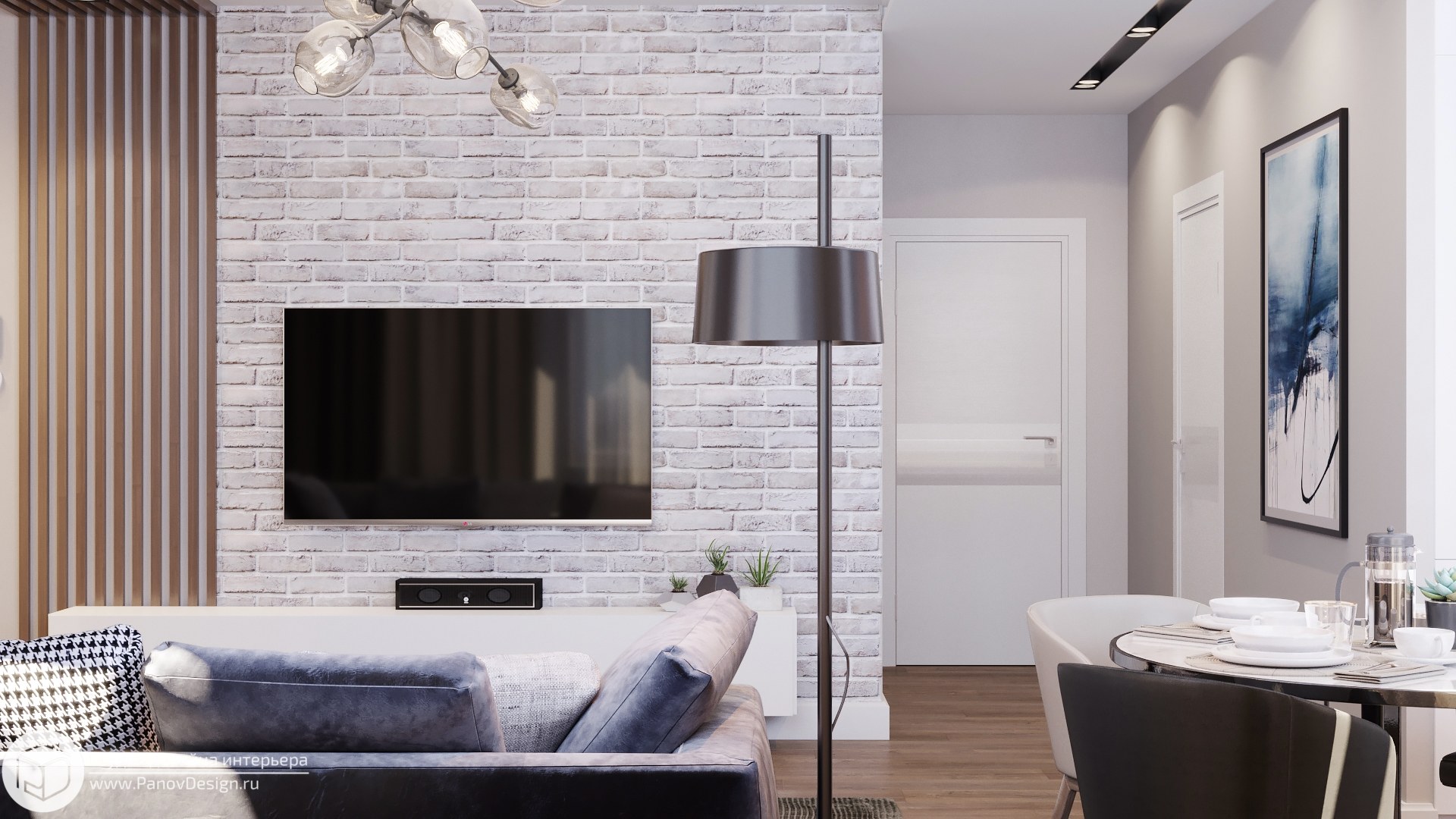 Гостиная с кирпичной стеной