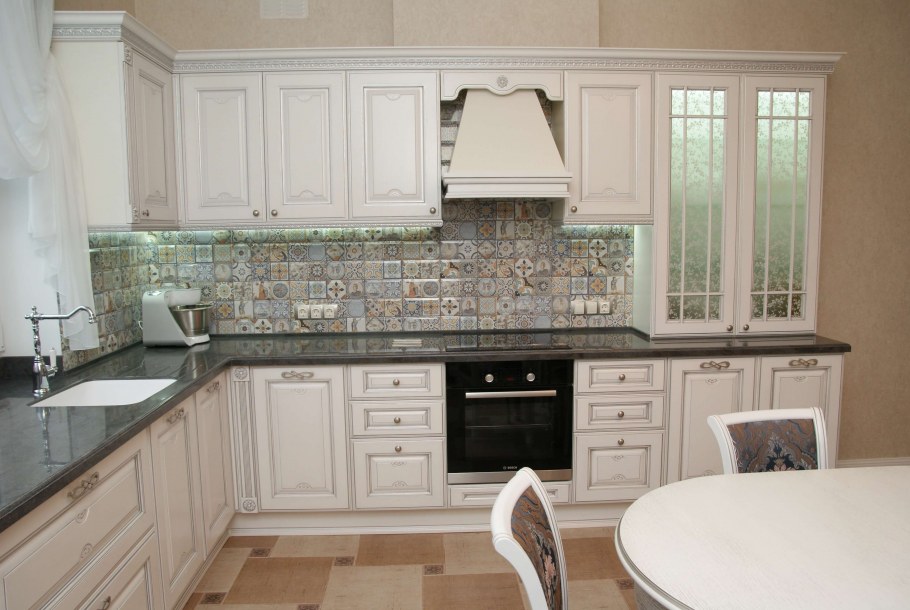Кухонный фартук для классической кухни цвета слоновой кости