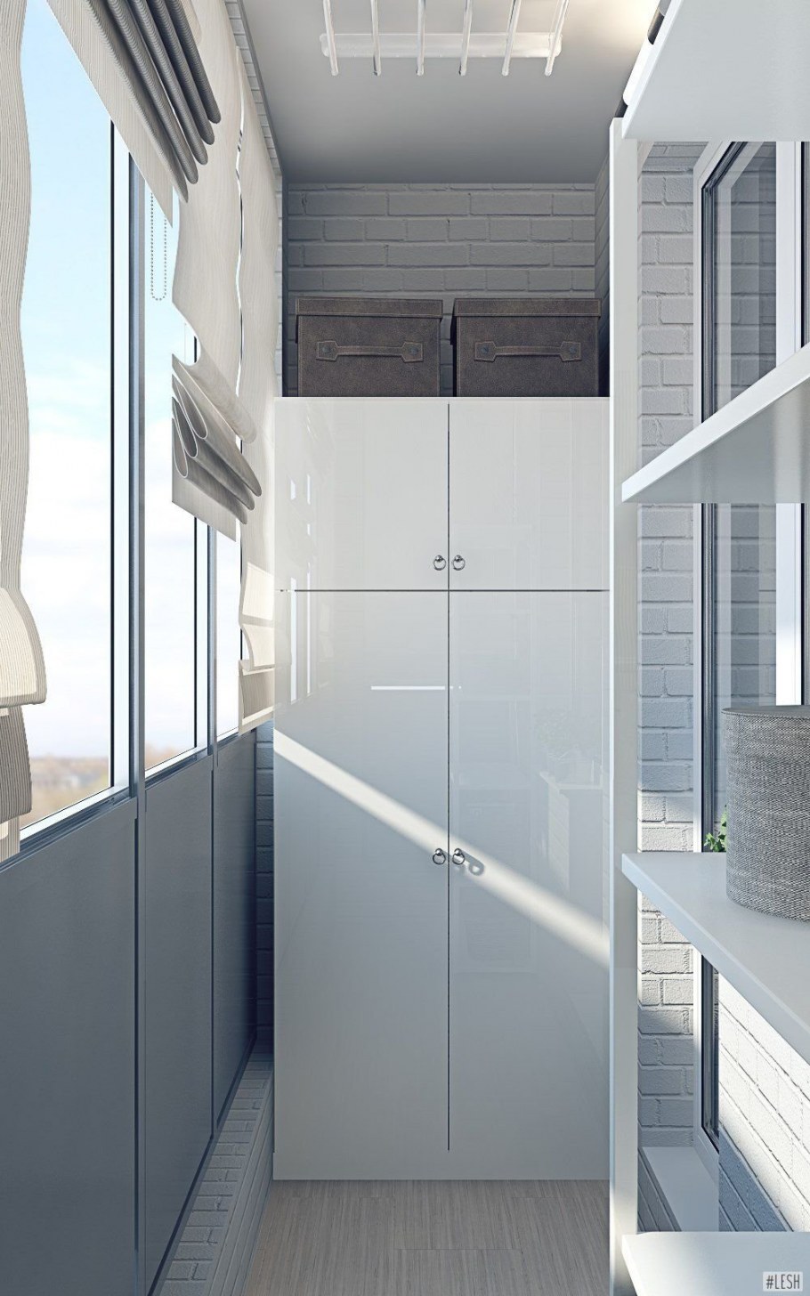 Дизайн балкона в квартире в панельном доме со шкафами (32 фото)