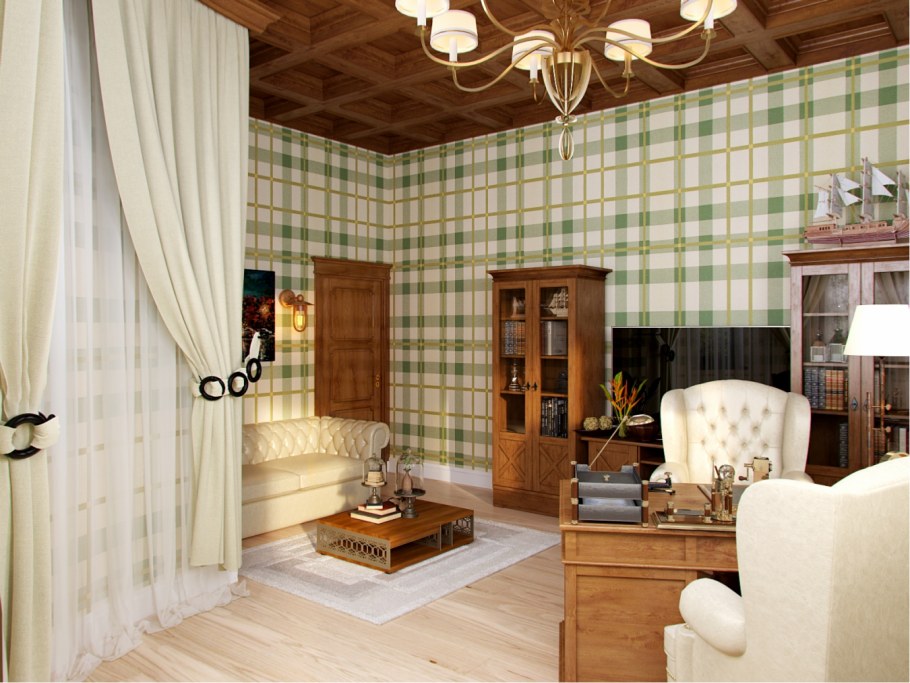 Шторы для кабинета в английском стиле в интерьере (54 фото)