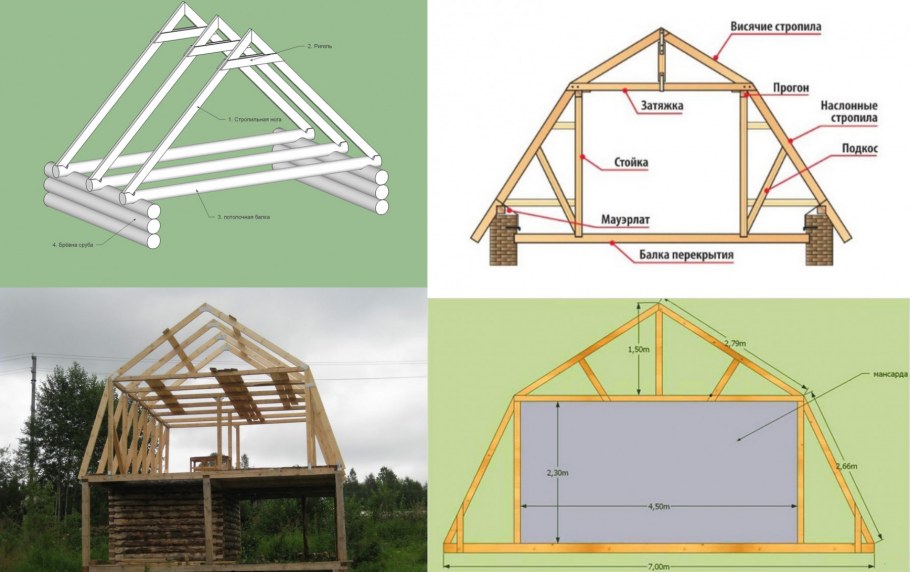 Схема мансардной двухскатной крыши
