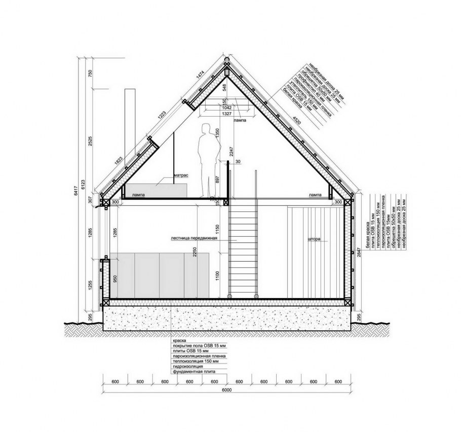 Двухскатная крыша с мансардой 4 на 6 чертежи