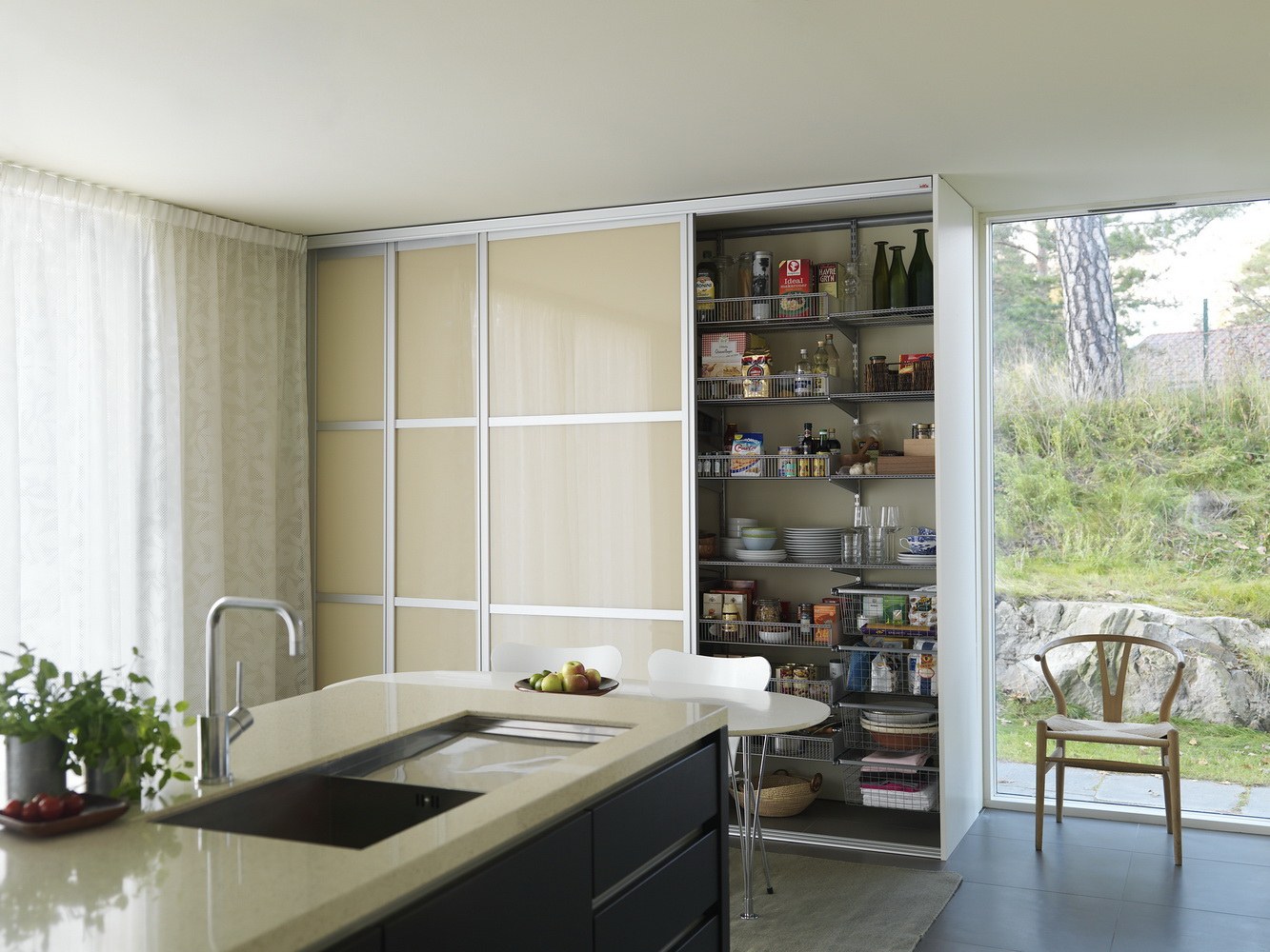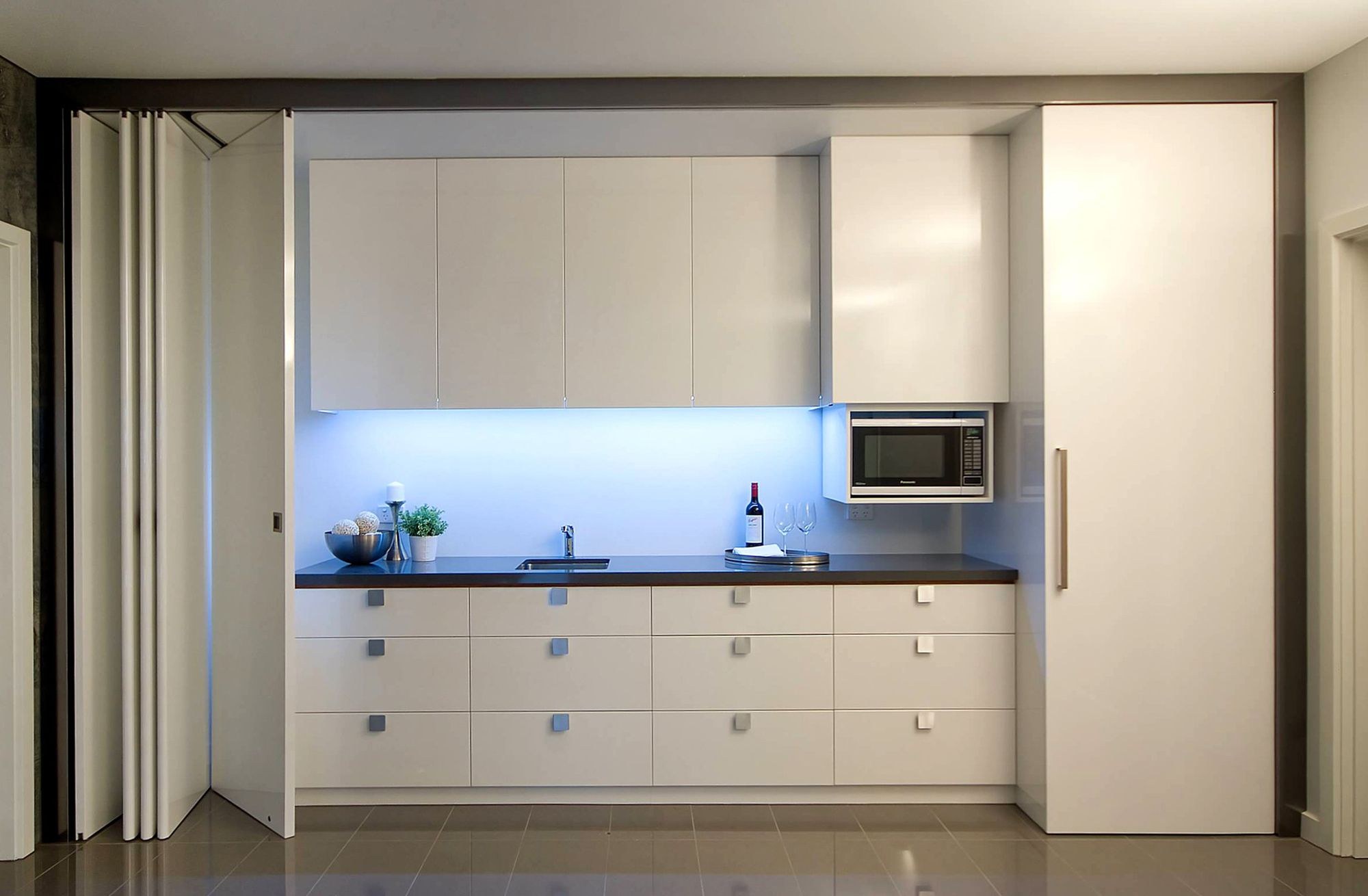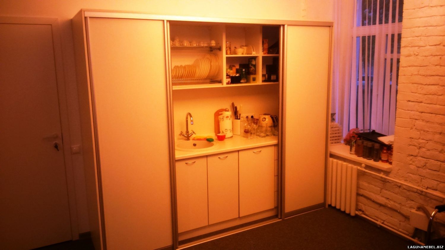 Кухонный гарнитур с раздвижными дверями (30 фото)
