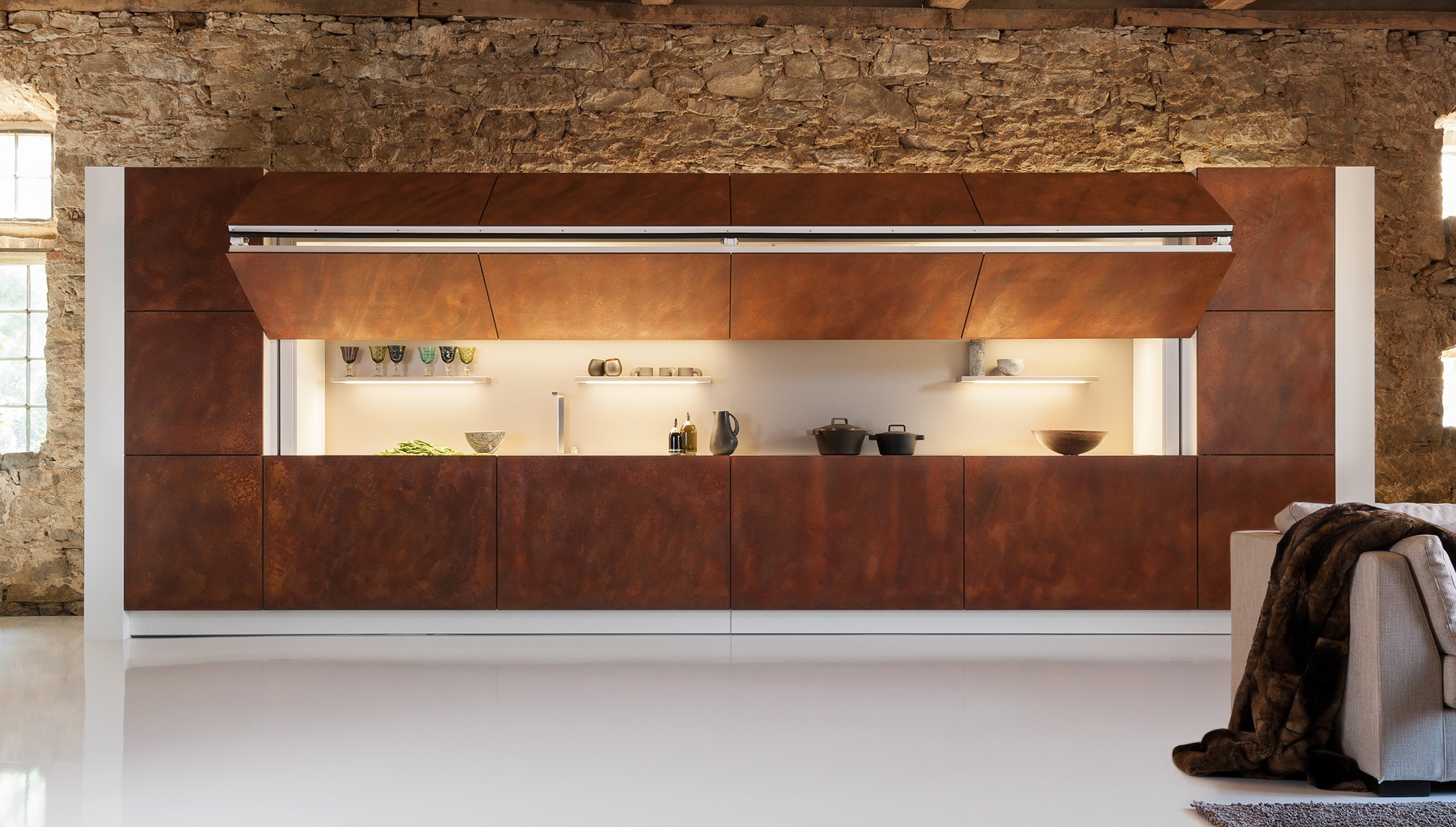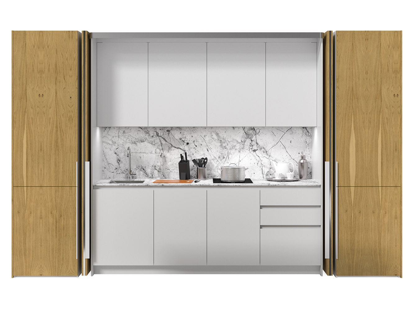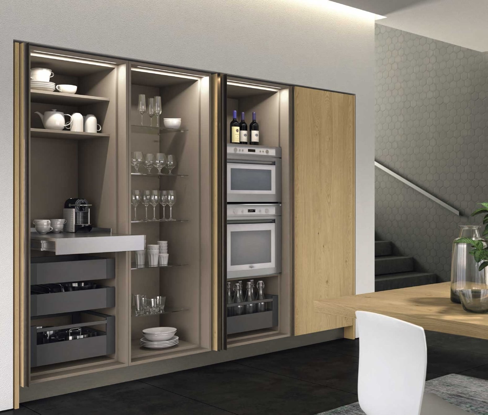Кухонный гарнитур с раздвижными дверями (30 фото)