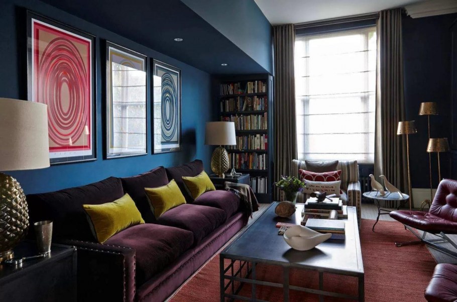 Синие стены в интерьере