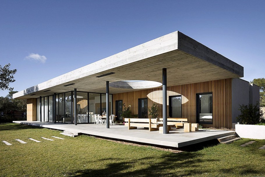 Дом в современном стиле с панорамными окнами и плоской крышей (53 фото)