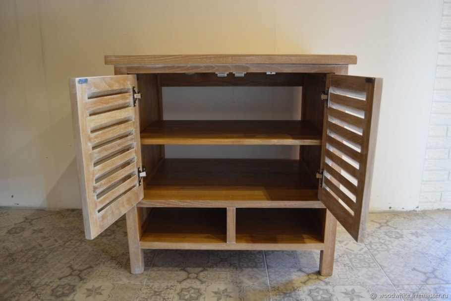 Тумба под раковину из жалюзийных дверей в интерьере (56 фото)
