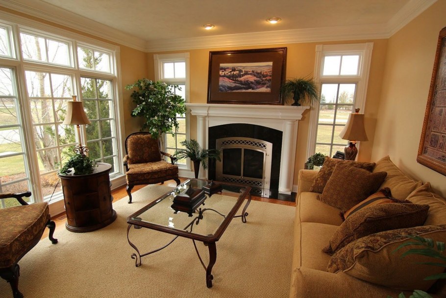 Гостиная с камином в стиле Кантри