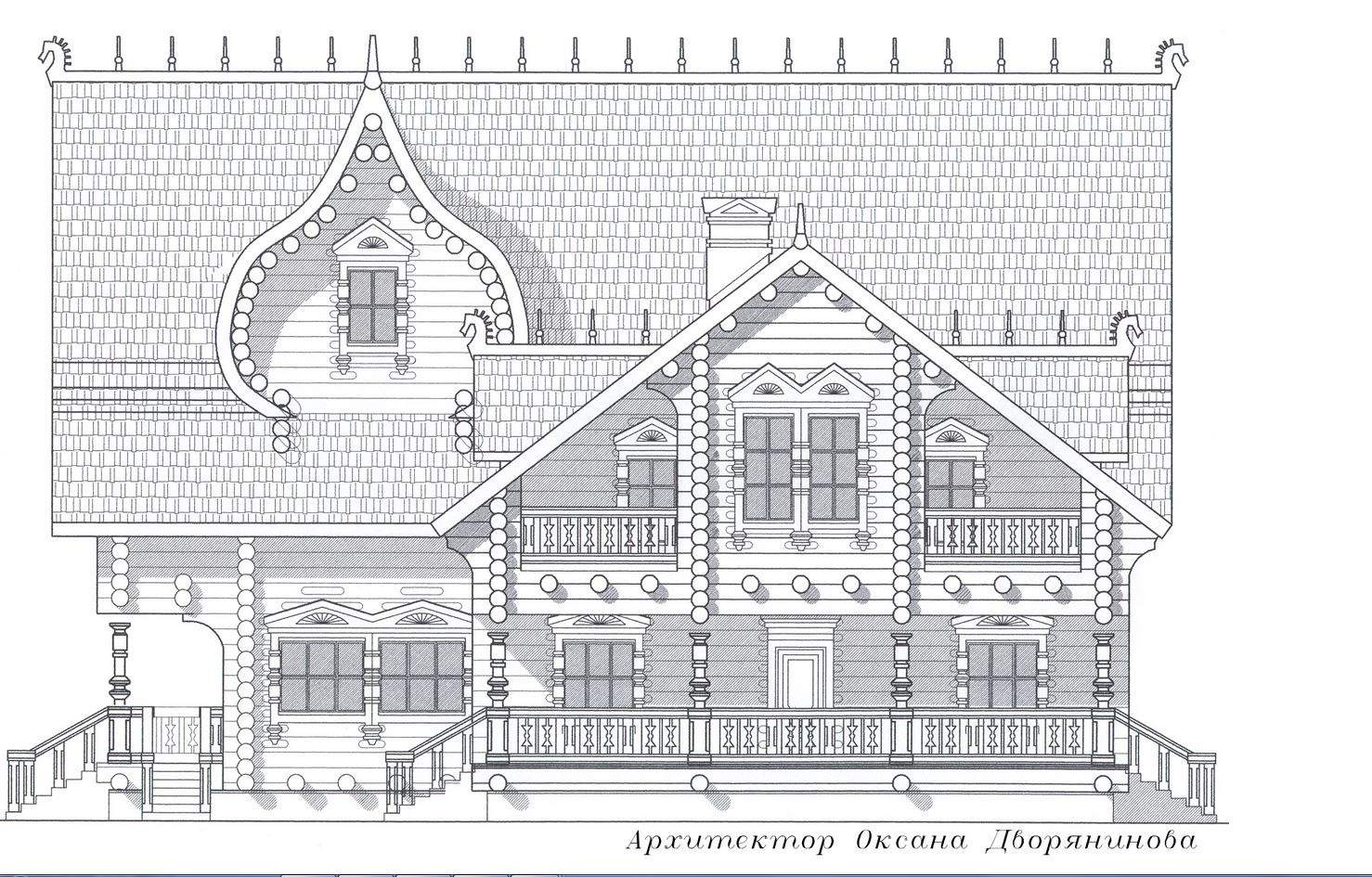 Чертеж фасада деревянного дома