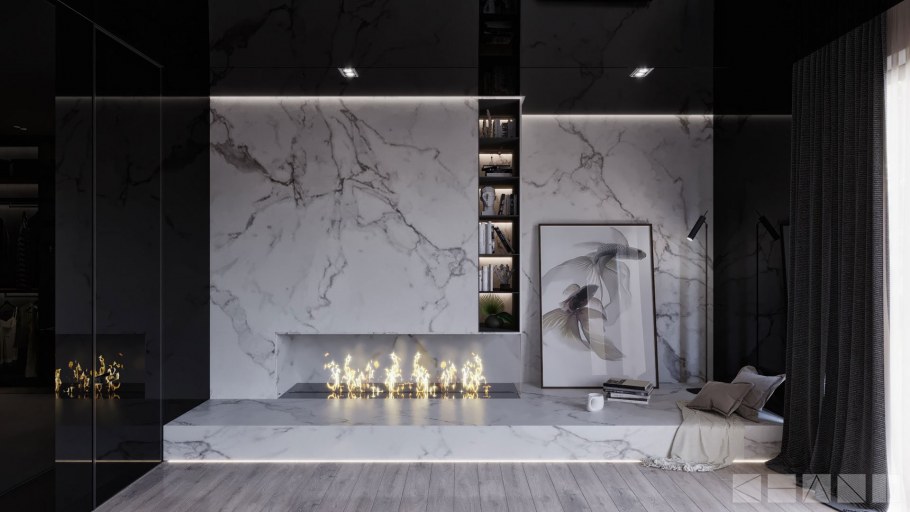 Спальня с мраморной стеной