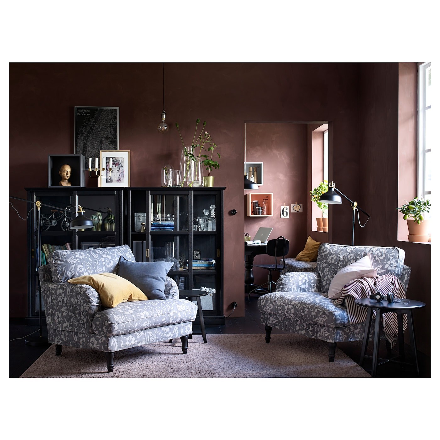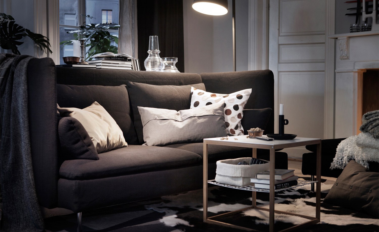 Гостиная с темной мебелью икеа
