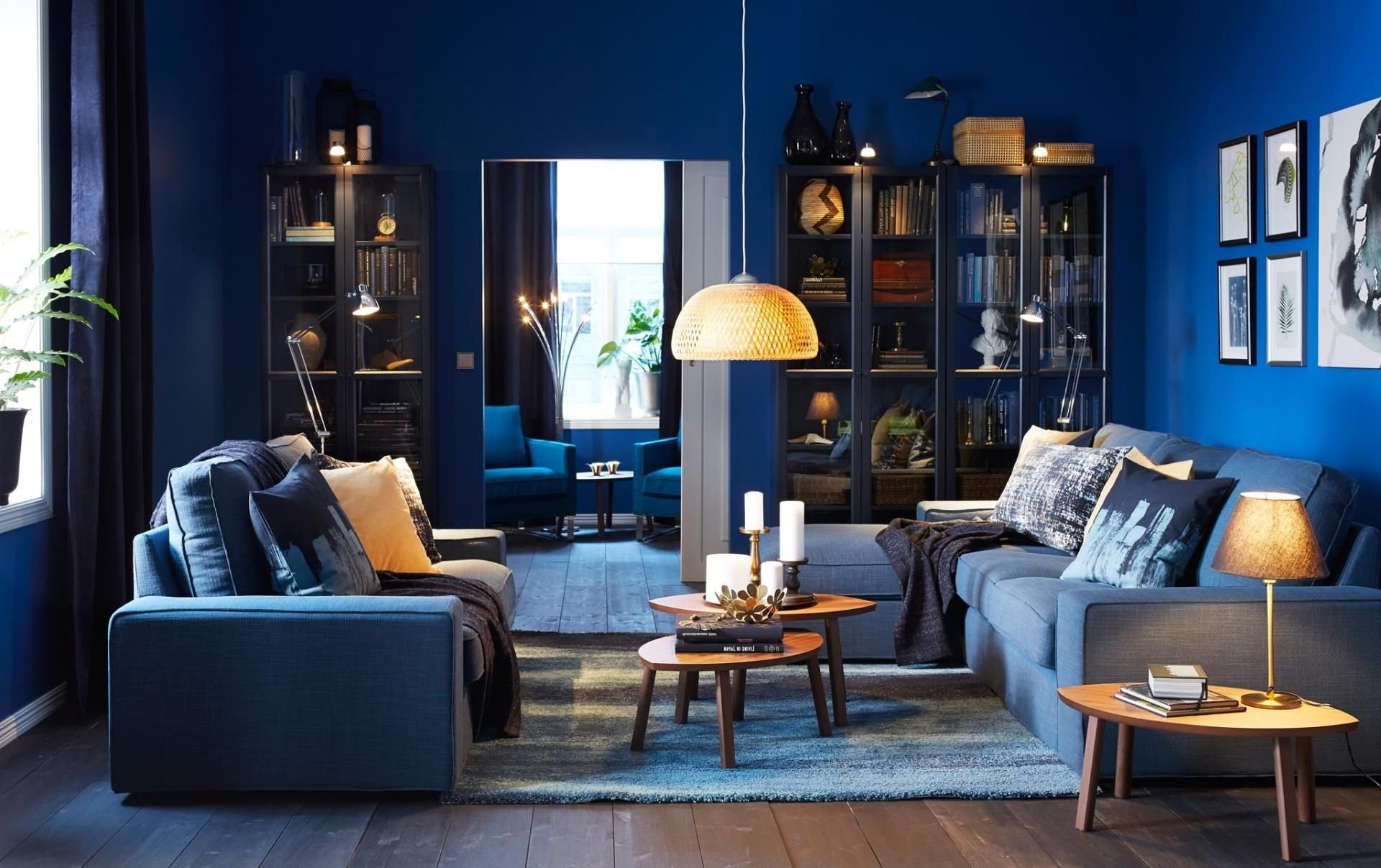Интерьер гостинной в синем цвете икея