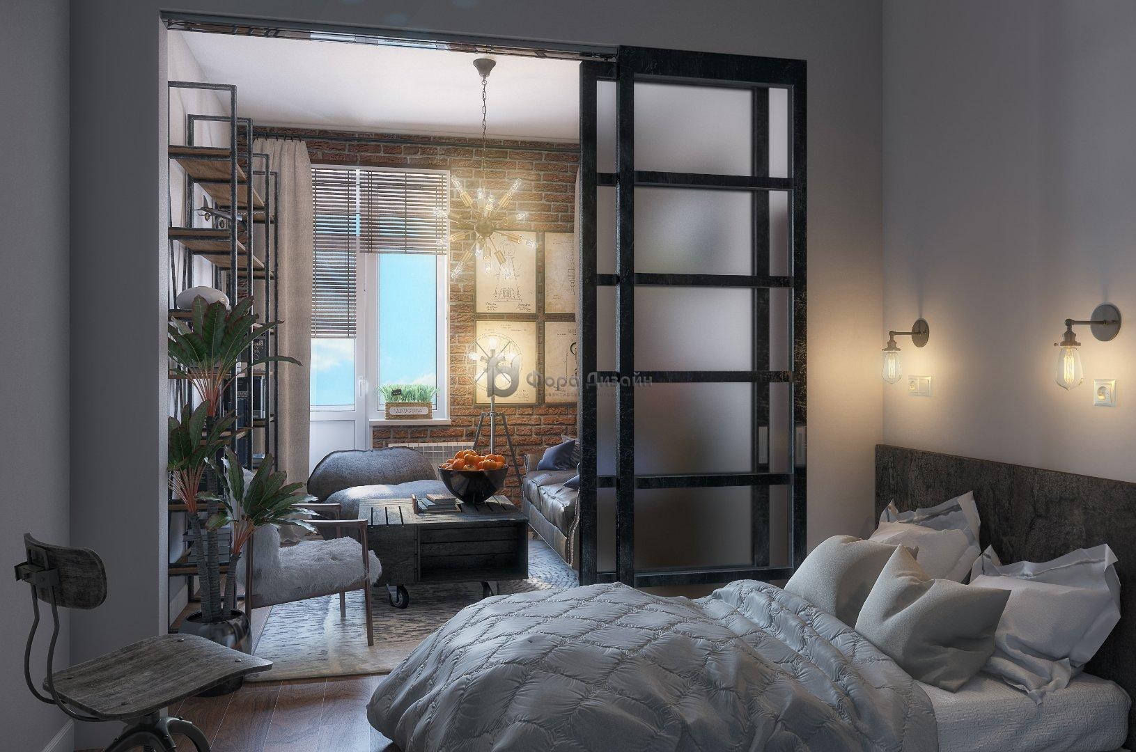 Лофт дизайн однокомнатной квартиры 32
