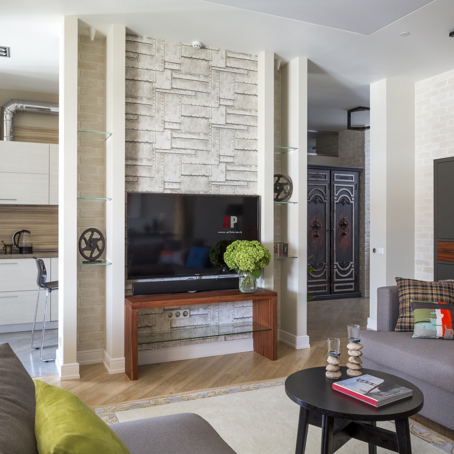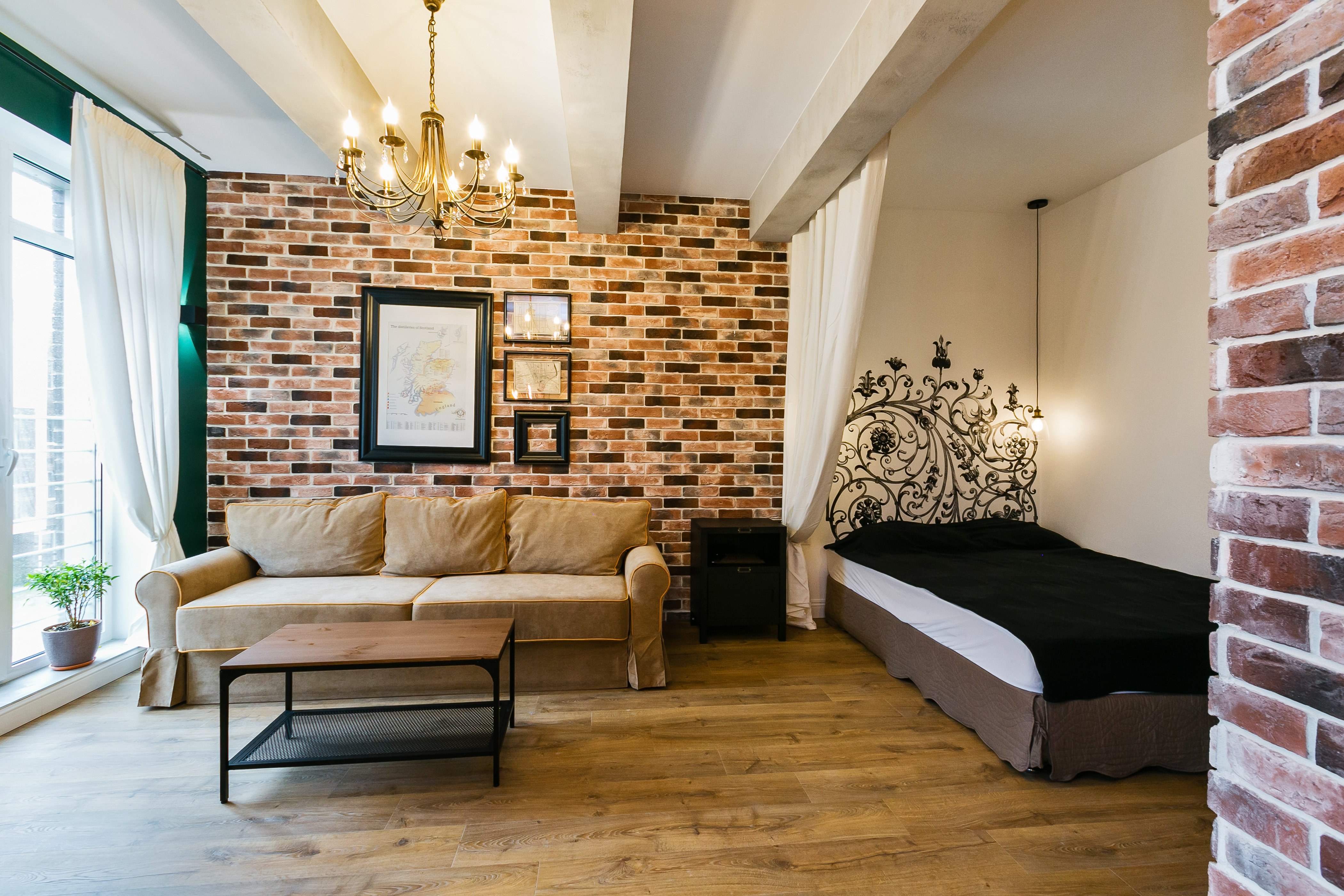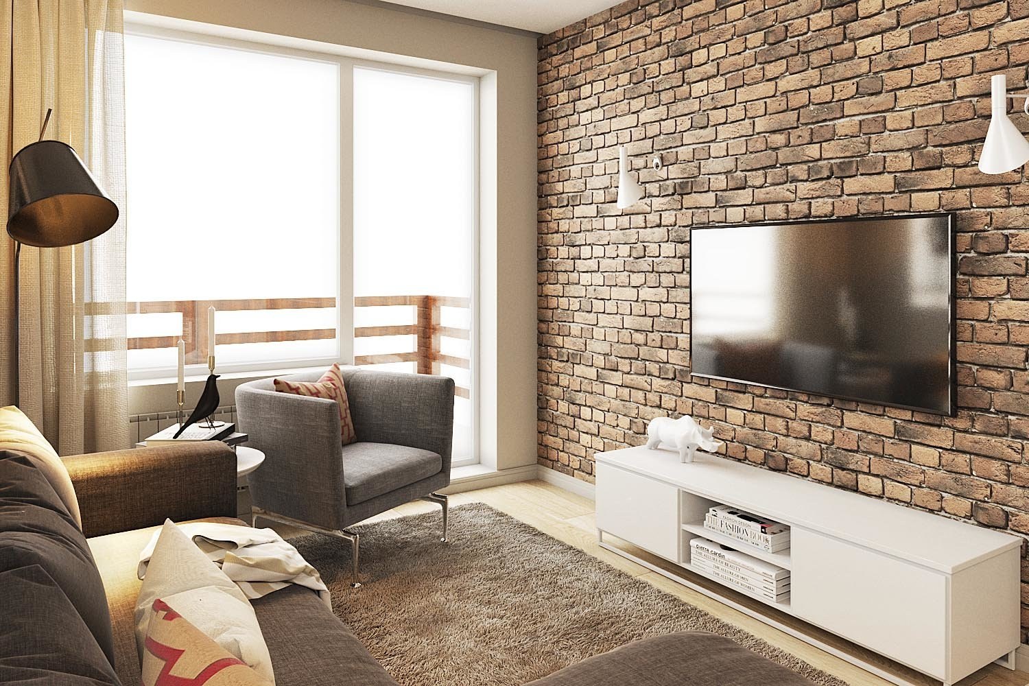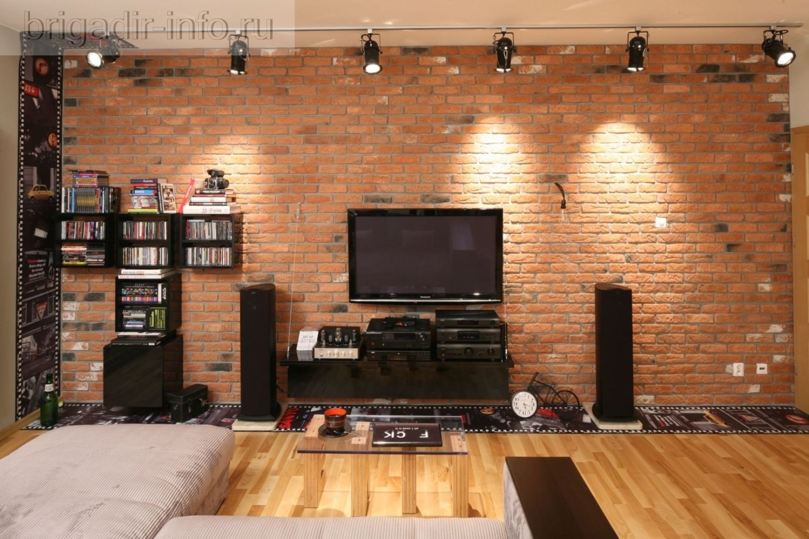 Гостиная с кирпичной стеной