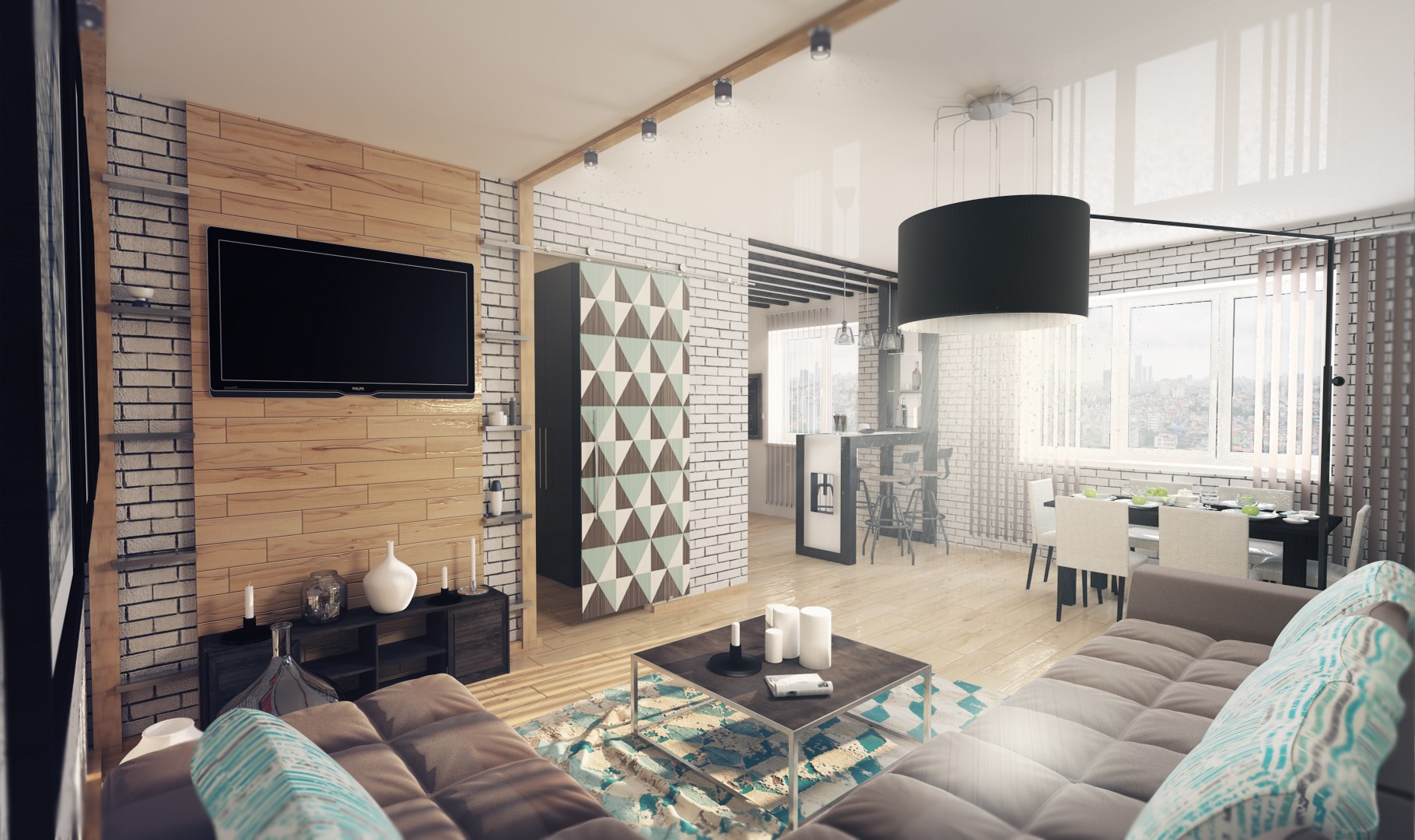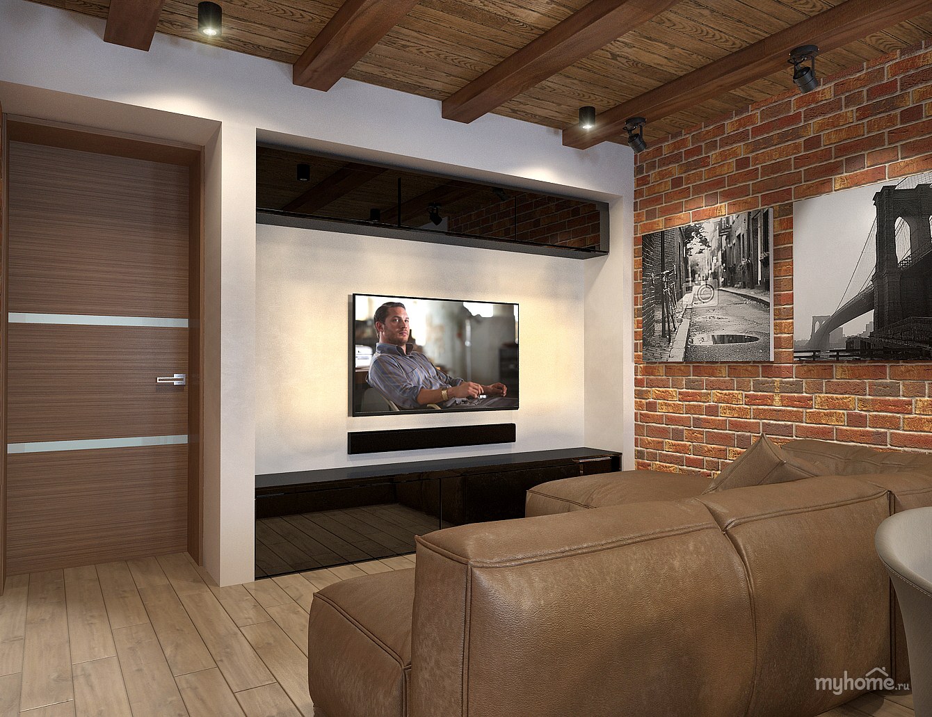 Гостиная лофт с телевизором