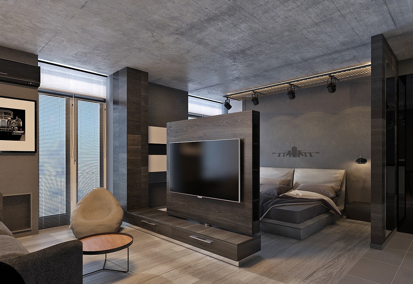 Мужской интерьер двухкомнатной квартиры студии