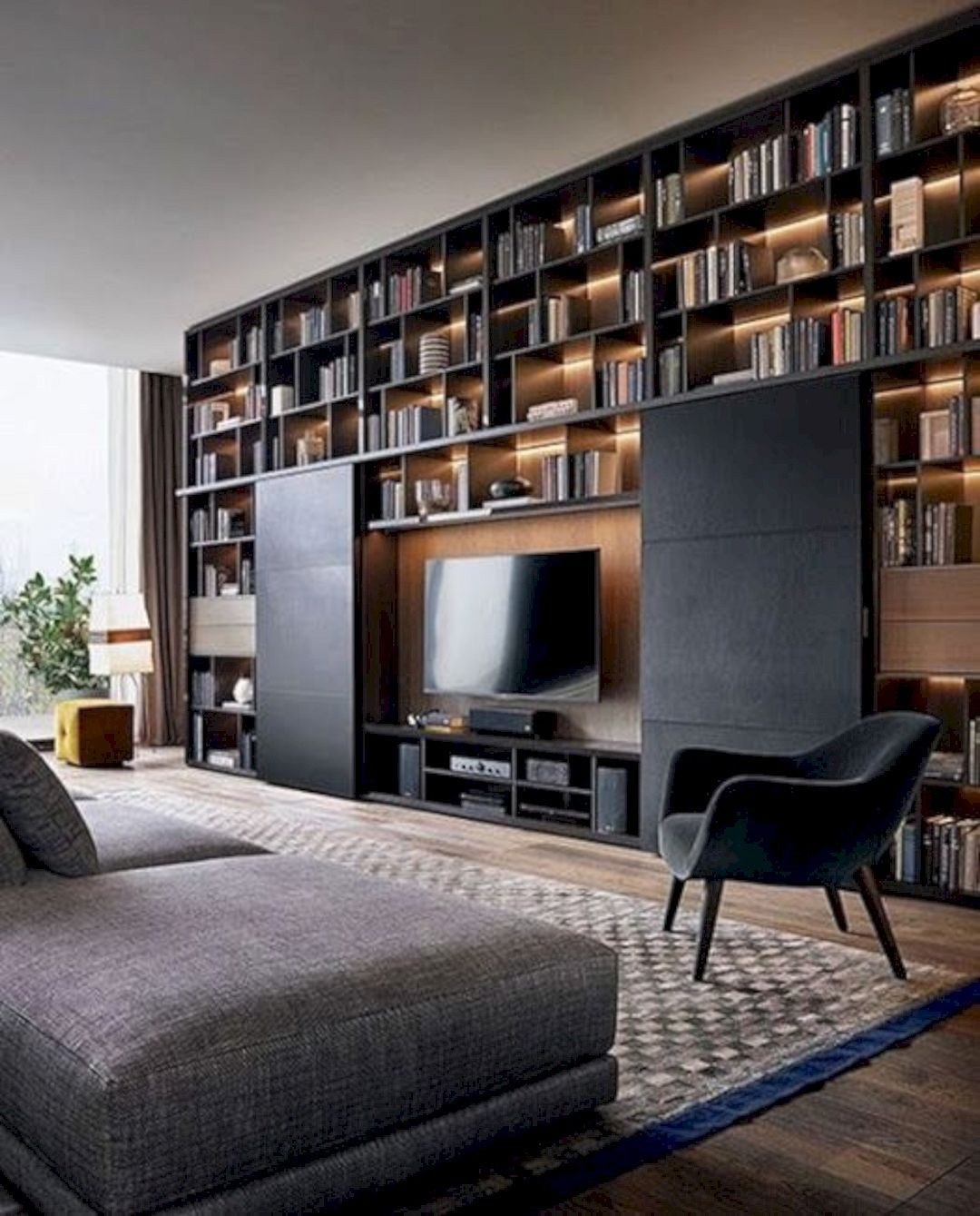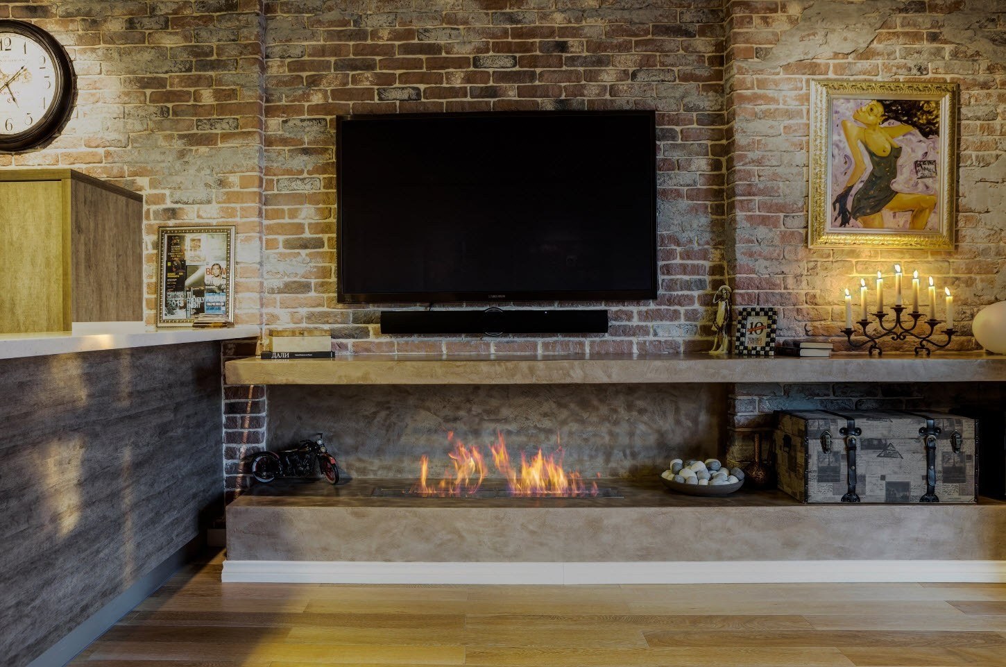 Ниша для телевизора в стиле лофт в интерьере (49 фото)