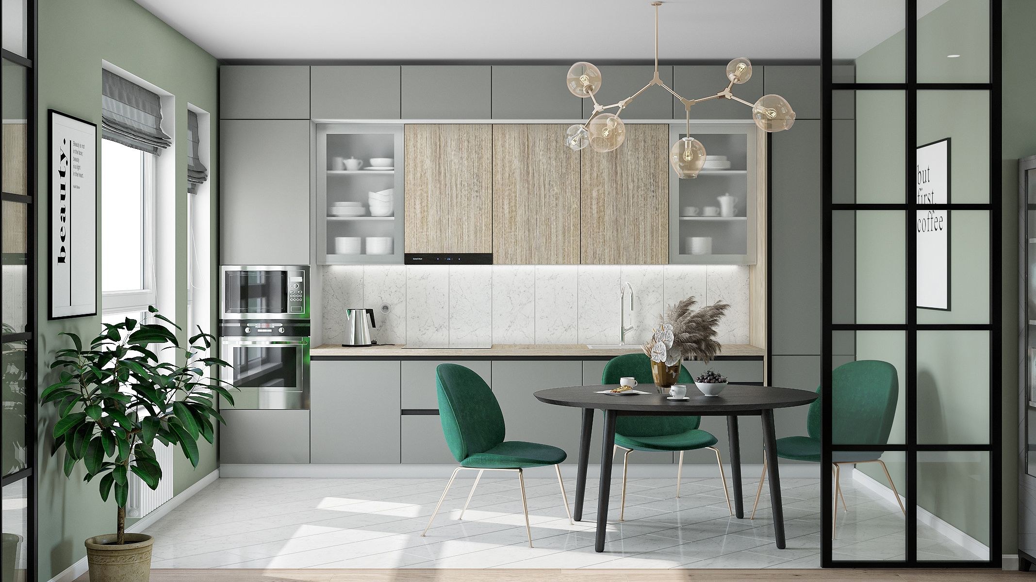 Интерьер кухни в серо зеленых тонах (43 фото)