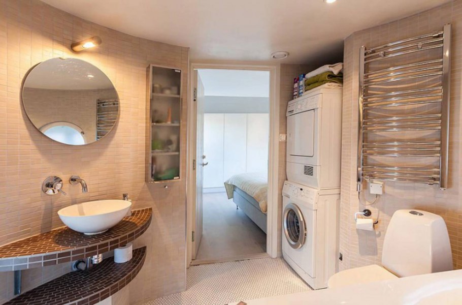 Ванная с душевой кабиной и стиралкой 9 кв м