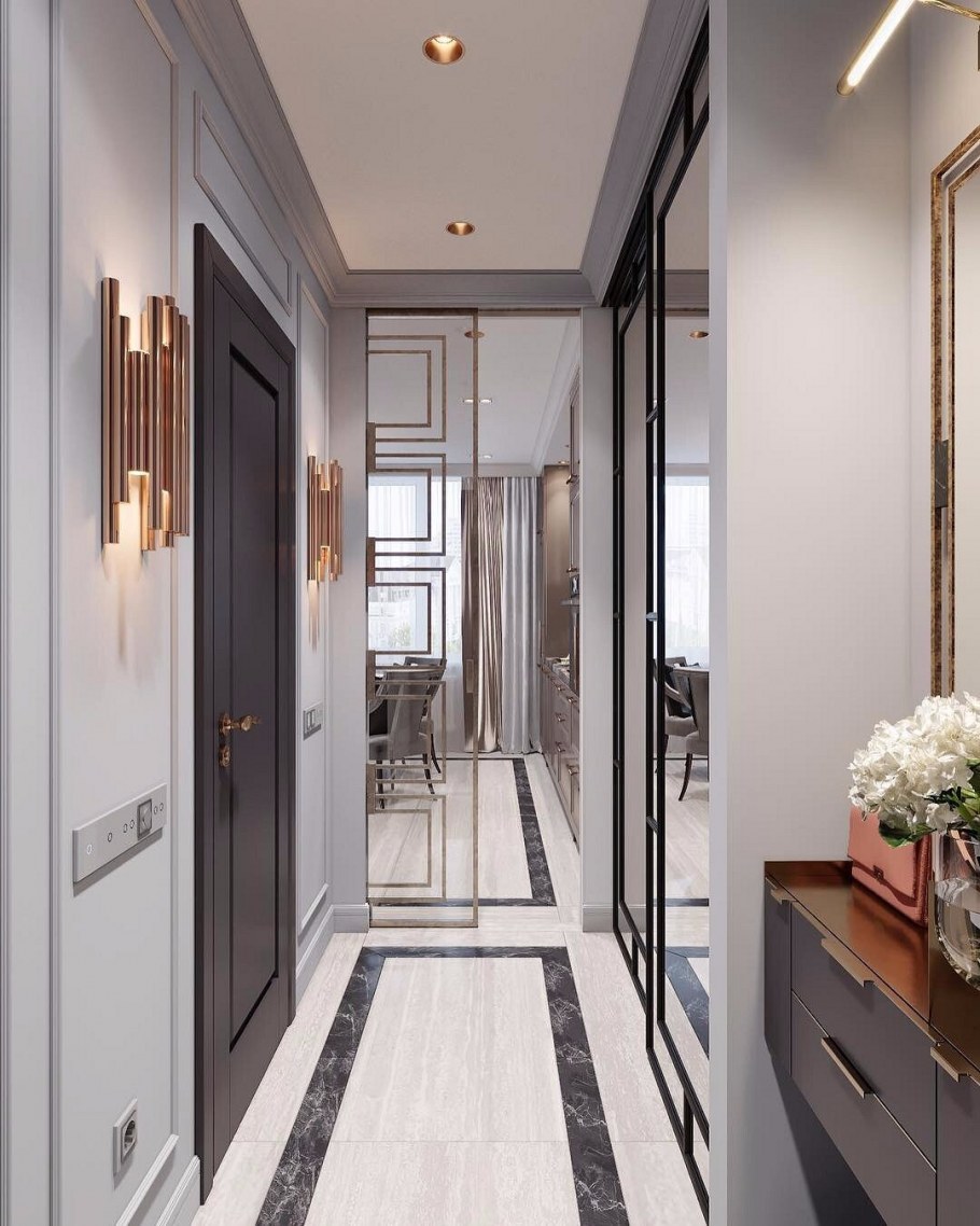 Интерьер длинной прихожей в квартире (31 фото)