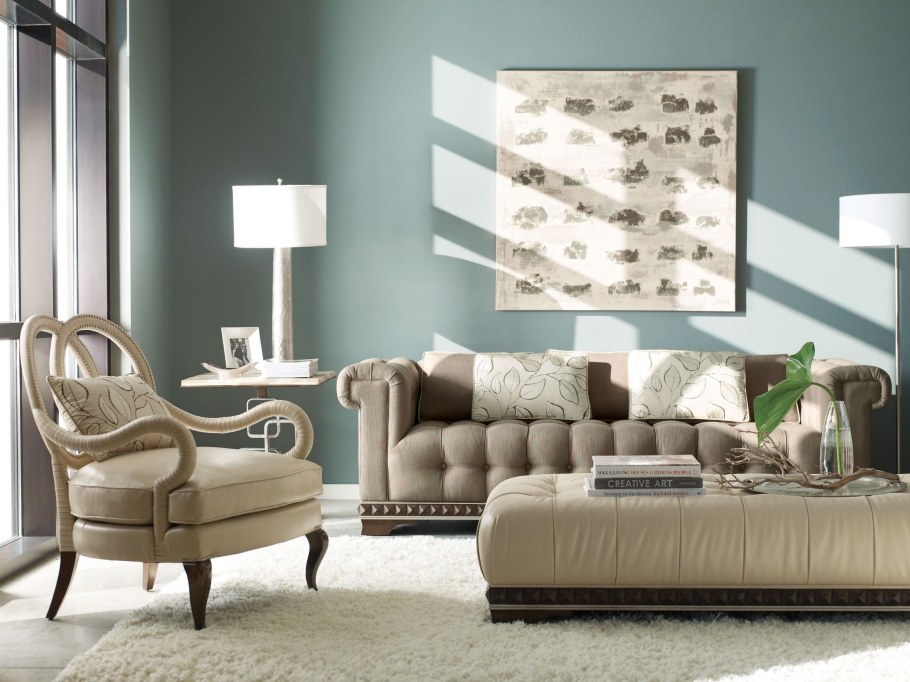 Серо бежевый диван в гостиную в интерьере (55 фото)
