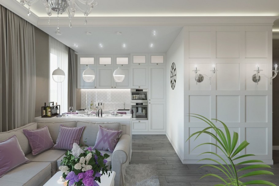 Кухня гостиная современная классика светлая