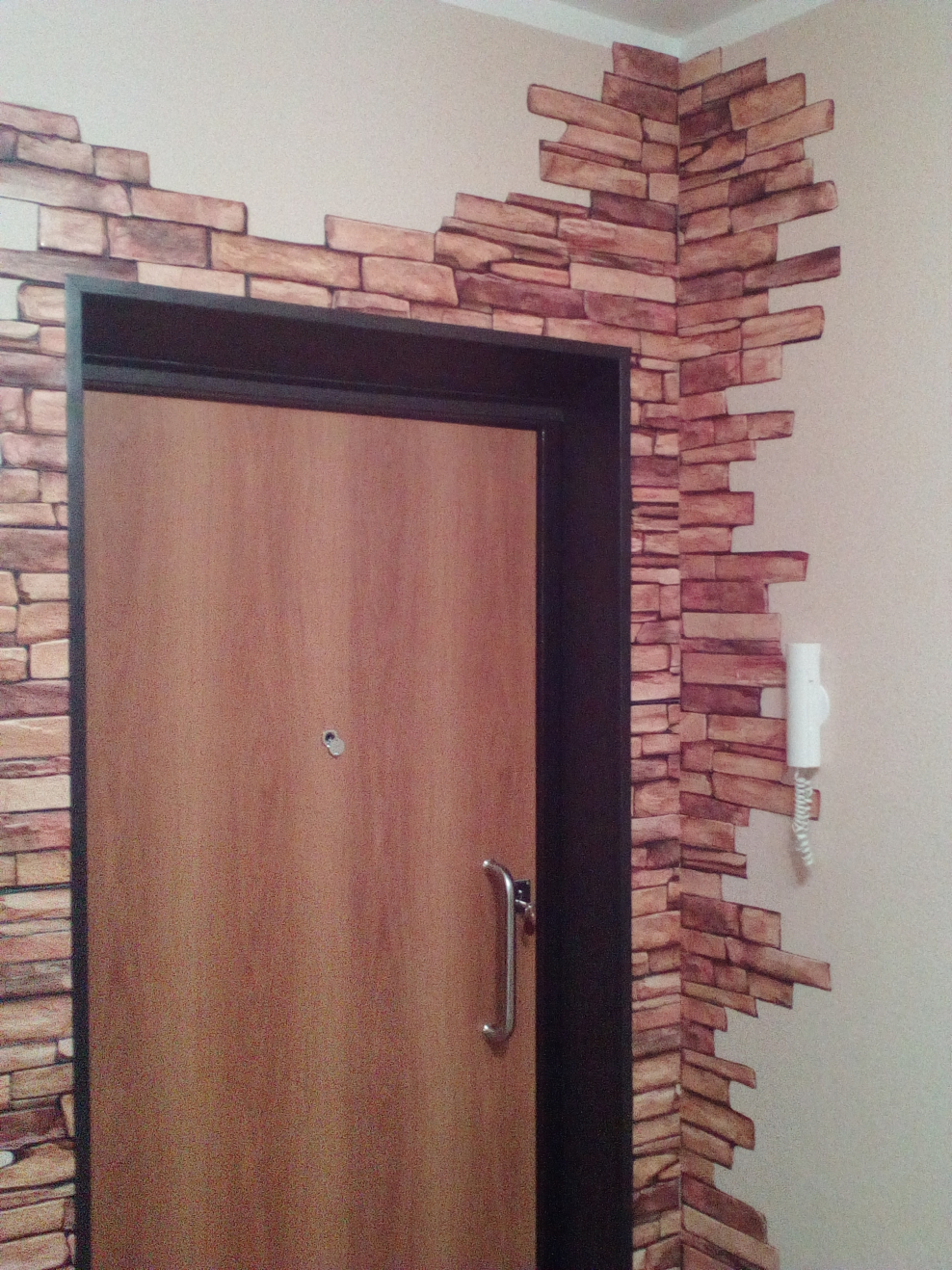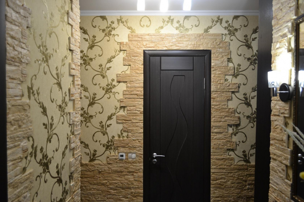 Отделка стен декоративным камнем в прихожей