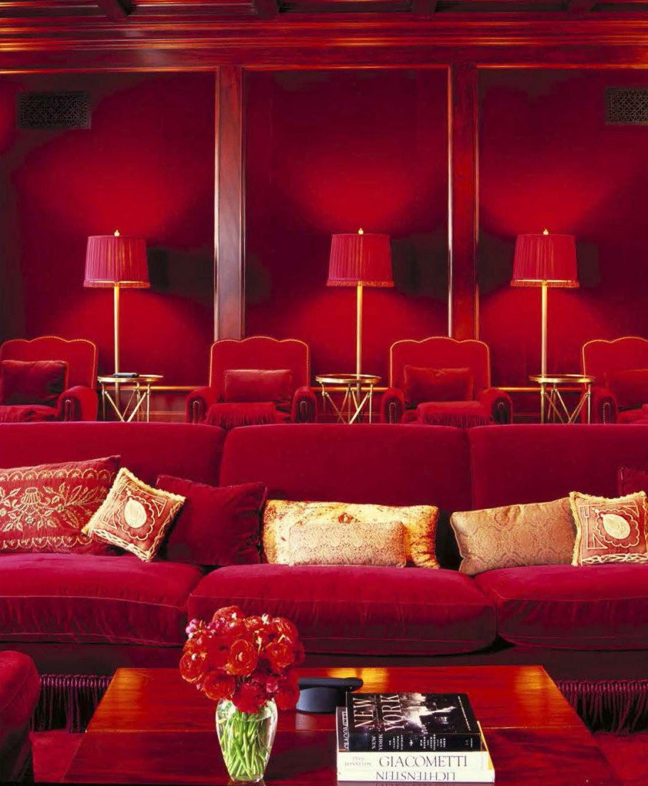 Домашний кинотеатр в красных тонах