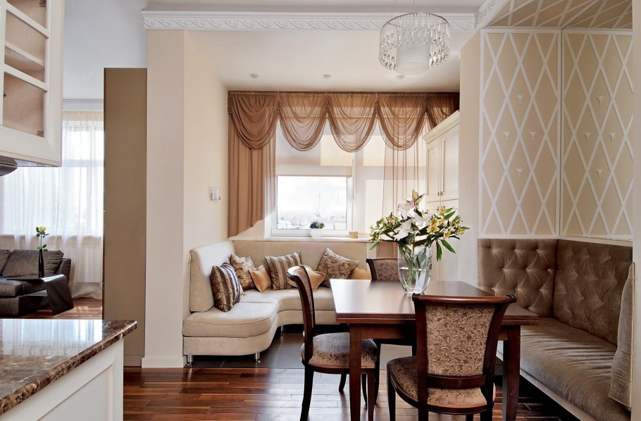 Кухня гостиная в классическом стиле в бежевых тонах